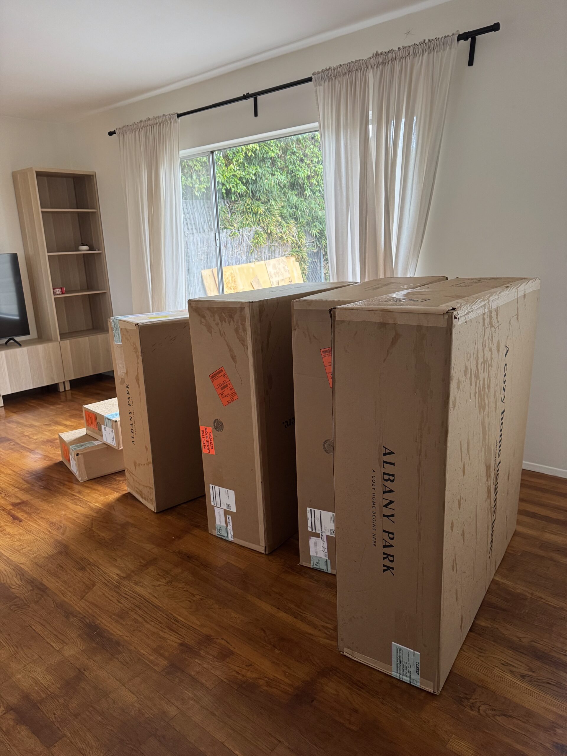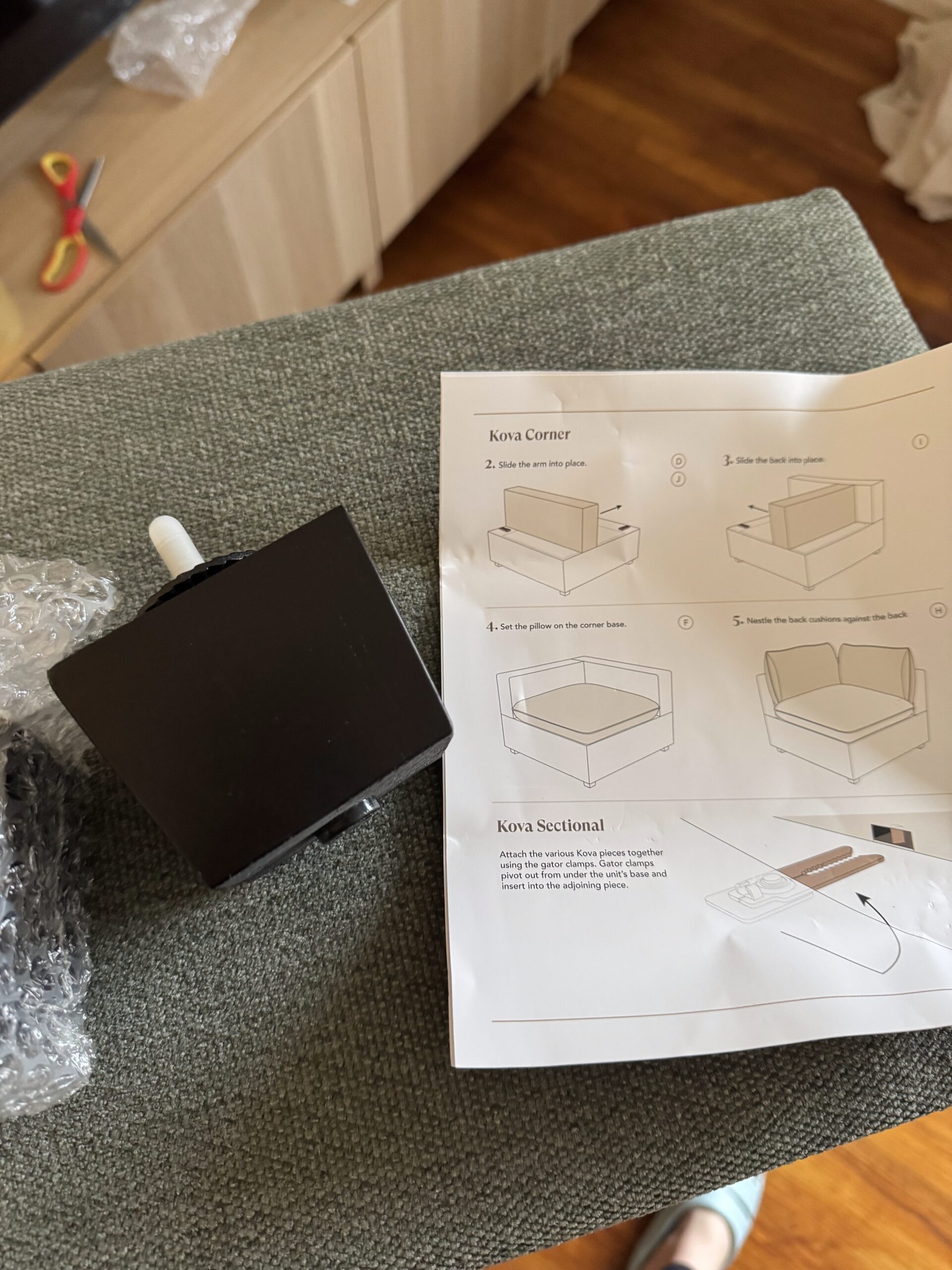 When our Kova Sectional arrived, it came in several large boxes—each one designed to fit through standard doorways and stairwells, which is a huge plus if you’re working with limited space. The boxes weren’t too heavy, but they were definitely bulky, so if you live in an apartment or need to carry them upstairs, I’d highly recommend having a second set of hands. We got lucky — the delivery drivers kindly brought them right into our living room. Just a heads-up though: there’s a good amount of cardboard and some plastic wrap (the pillows come vacuum-sealed), so plan for recycling. It took us a few trash days to fully clear it out, but honestly, that’s expected with a sectional this size.