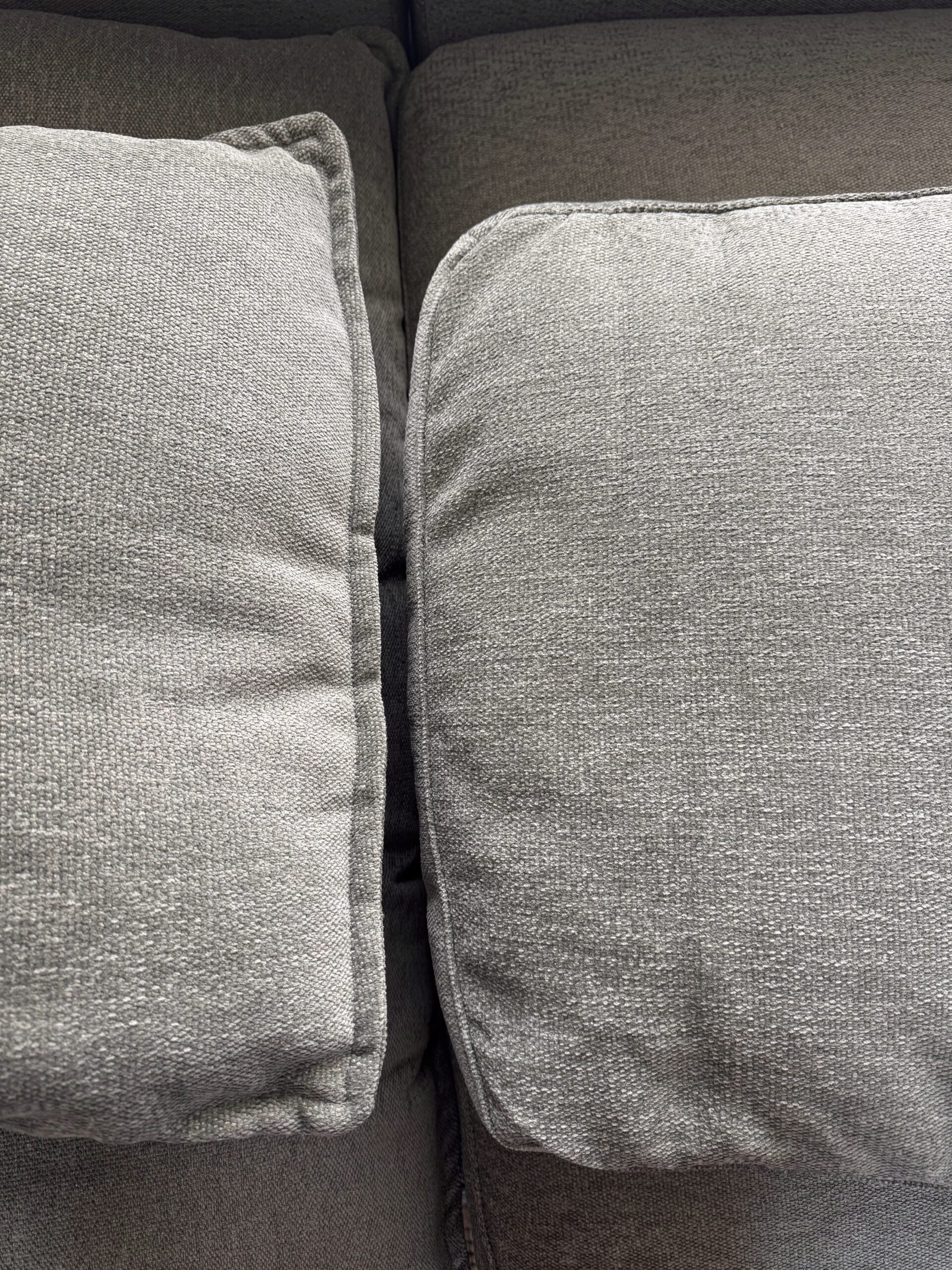 We were fortunate to test both cushion styles offered by Albany Park: the original pillow cushions and the newer box cushions. While the pillow cushions are undeniably plush and inviting, we found ourselves gravitating toward the box cushions. They offer a bit more support and structure, which we appreciated — especially as we thought ahead to nursing, baby-holding, and all the lounging we’d be doing during maternity leave. They feel firm without being stiff, supportive without sacrificing comfort, like the best kind of hug.