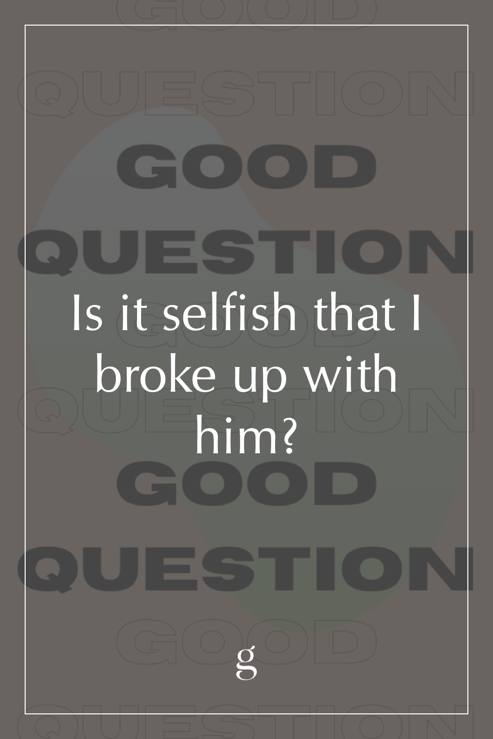 “Recently I broke up with my boyfriend because I needed space to work on myself. He did nothing wrong and the guilt is eating me alive for leaving him. Is it selfish that I broke up with him? How do I deal with these conflicting emotions?”