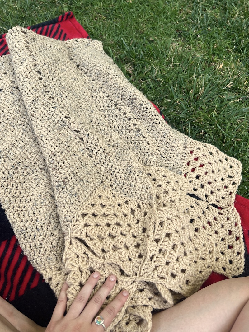 I’m here now, in the early stages of re-making the blanket. I can’t help but think about the chain of people who’ve made me who I am, and also of how much agency I have in stitching together a life I love. I yarn over for a half double crochet and hope I have enough yarn from this dye lot to make the entire project. But I remind myself, again, to stay open to starting over. I’ve done it before.