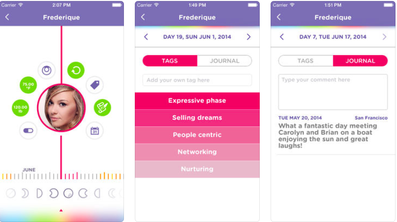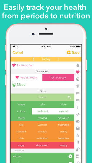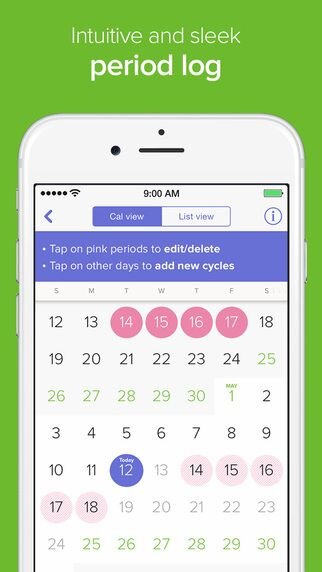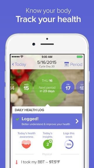 Glow is a comprehensive period tracking app that is a great “starter” when deciding to track your body’s cycles naturally. Log your symptoms, moods, sex drive, sex details, sleep duration etc. After each log, the app gives you tips and advice about what’s normal and what’s not normal. It kind of feels like talking to a best friend about your period. We also love the color-coding on the calendar—red shows the week of your period and green tells you when you are fertile. It even calculates the percentage of fertility for the week, which helps a lot when wanting to avoid pregnancy or to assist in getting pregnant. The other cool feature is that your partner can have a conjoined profile with you to log his/her symptoms to see what you each are feeling.