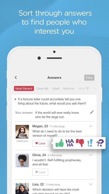 If you were a fan of the New York Times’ 36 Questions, you’ll be obsessed with Sapio. This app isn’t just about pretty faces—it’s about mixing beauty and intellect. First, users answer thoughtful questions like what they take the most pride in or how they can be the best versions of themselves. Then, with the app’s Q&A match system, they’ll be matched with those who align with their lived experiences and genuine passions. Plus, it’s free to use with up to 100 likes a day and offers the option to purchase coins for additional likes. We’re excited about Sapio because online dating could (and should) be way more than just hookups and hangouts.