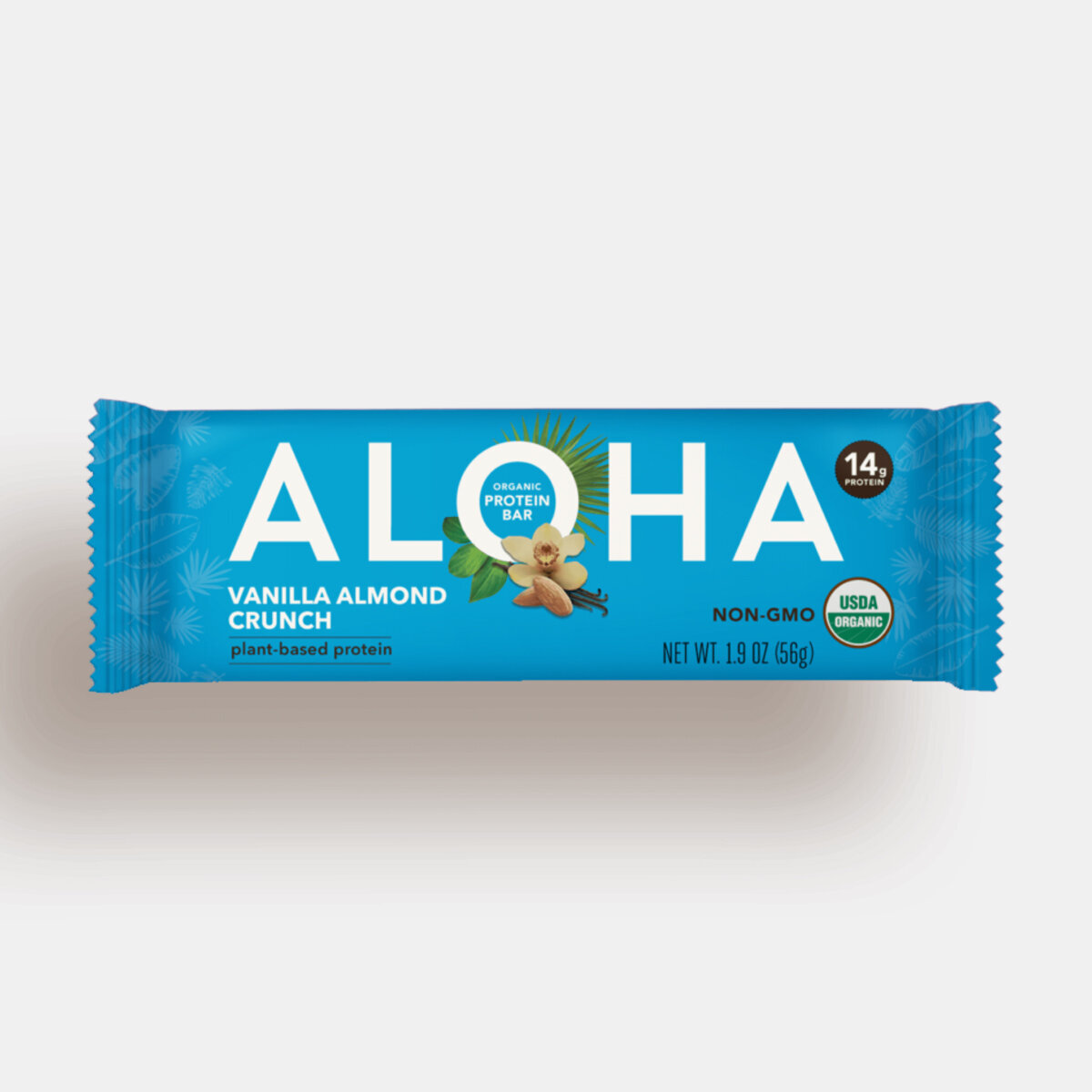 All about living your best (and most nutritious, sustainable) life? Youâre going to love Alohaâs Vanilla Almond Crunch Protein Bars. Theyâre slightly sweet, a bit nutty, and more filling than a typical handful of almonds or peanuts. Made with 12 simple and USDA Certified Organic ingredients, Aloha bars will have you ready to take on the day in no time.