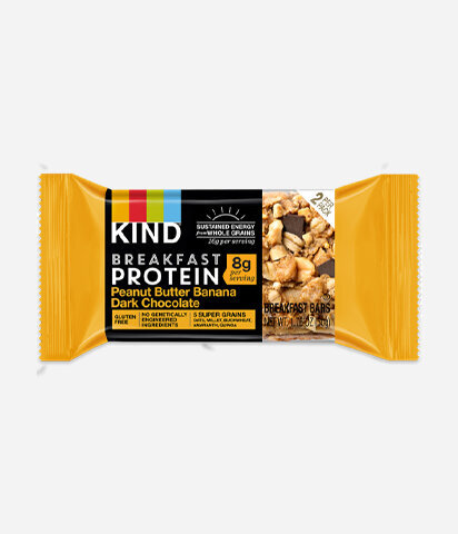 Start your morning the KIND way, with these Peanut Butter Banana Dark Chocolate Protein Bars. GMO- and gluten-free, this bar is packed with both fiber and protein, making it the best kind of breakfast booster for eating on the go. (Plus, they are two to a pack, so you can even save one for later.) All the flavor of your favorite protein shake, but without sugar high or animal products.