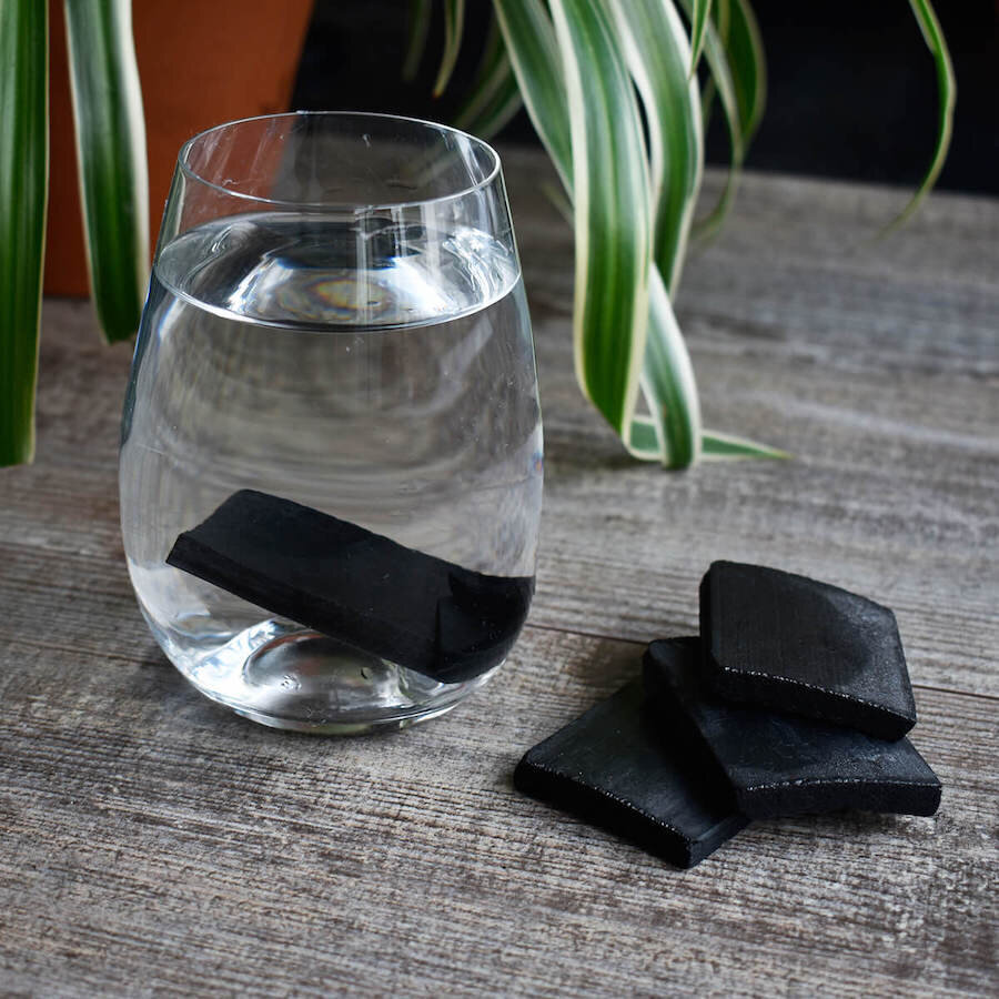 A better option is charcoal water filters. Typically made using eco-friendly bamboo or sustainably sourced wood, these plant-based materials are put into a specialized kiln and burned at high temperatures to create a porous, glass-like charcoal filter that will purify tap water.