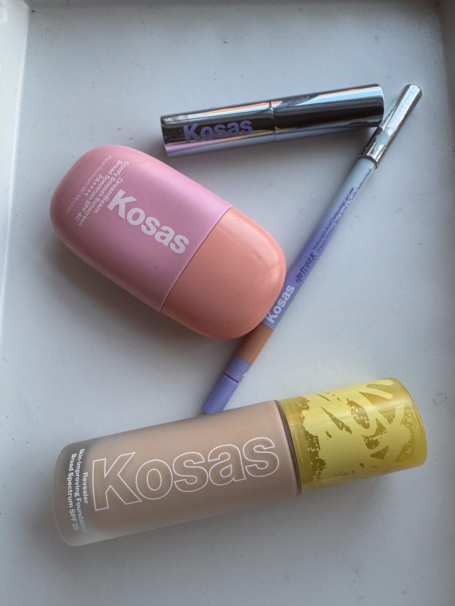 Our Editor’s Review | “I am a sucker for easy makeup — I want products that are straightforward and high performing, that are not only easy to use but also beneficial in some way. Kosas more than lived up to my highest hopes! The DreamBeam tinted SPF is the perfect daily base, going on smooth and rich with just enough coverage to smooth skin tone and texture. Layering on the Revealer Skin-Improving foundation is my new magic trick for quick, flawless coverage that is not too dewy nor too matte — just healthy, regular skin! The lip products are smooth and keep my mouth feeling soft with the perfect, subtle hint of color all day long.”