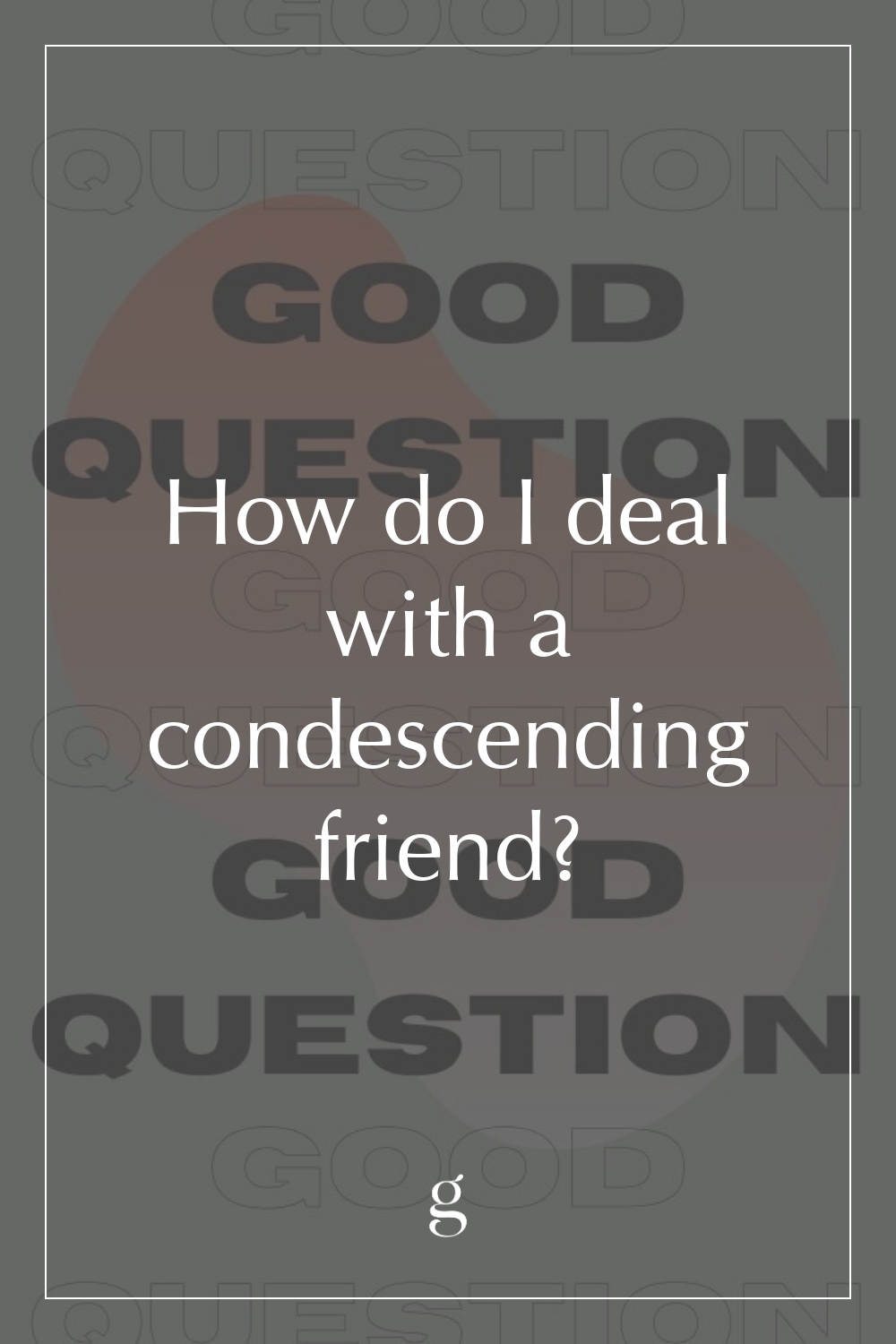 Hello, sweet reader! I’m so glad you’re asking about this. It’s no secret that a condescending friend rarely gets their point across. I’d even go as far as saying condescending friends can generally be resented, so it’s nice that you’re looking for advice before entirely dismissing the person. Kudos to you!