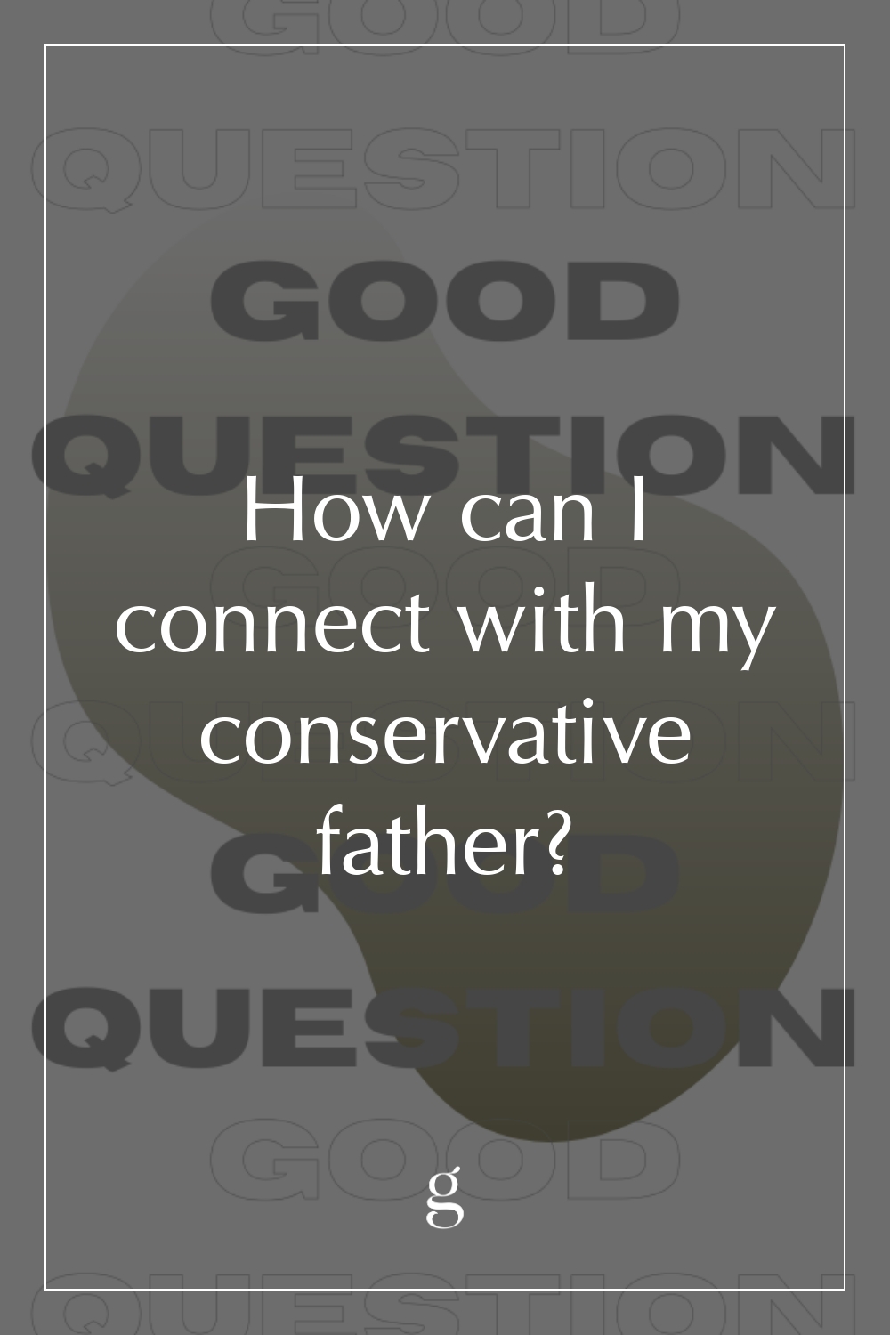 How can I communicate effectively with my conservative father? It hasnāt bothered me much until now, as he is furloughed and has a lot of extra time. We are as opposite as can be and Iāve always refrained from expressing my opinion around him to avoid conflict, but he isnāt as courteous. With him, it always comes down to politics, but I donāt want our relationship to be about that. I lost my mom two years ago and I long to feel a closeness to him that I havenāt felt since I was a child. I also just want him to find happiness. The more he expresses his political opinions and gets wrapped up in the news, the angrier I get and my tendency is to avoid. I look at my friends who can say anything they want around their parents with envy. But I donāt want to push him away! Iām getting married in November and want him to play an integral role like most fathers. Iāve considered writing a letter so I can express myself carefully, but Iām afraid of not being taken seriously and thatās what hurts the most.