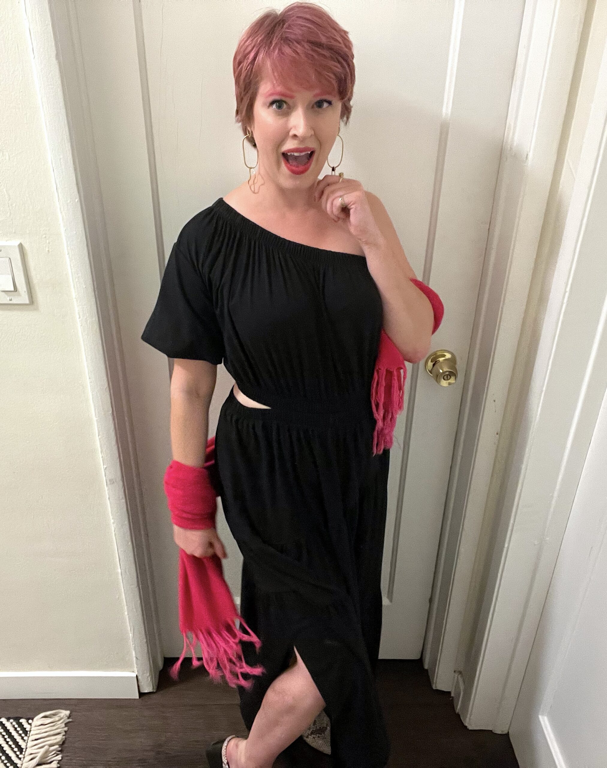 Cuyana’s clothing has long been on my wish list, so I headed straight to the site and was greeted with this stunning one-shoulder beauty. Reader, I am a very thrifty person, but I loved the dress so much that I purchased it at full price — and overnighted it to be sure I had it on time.