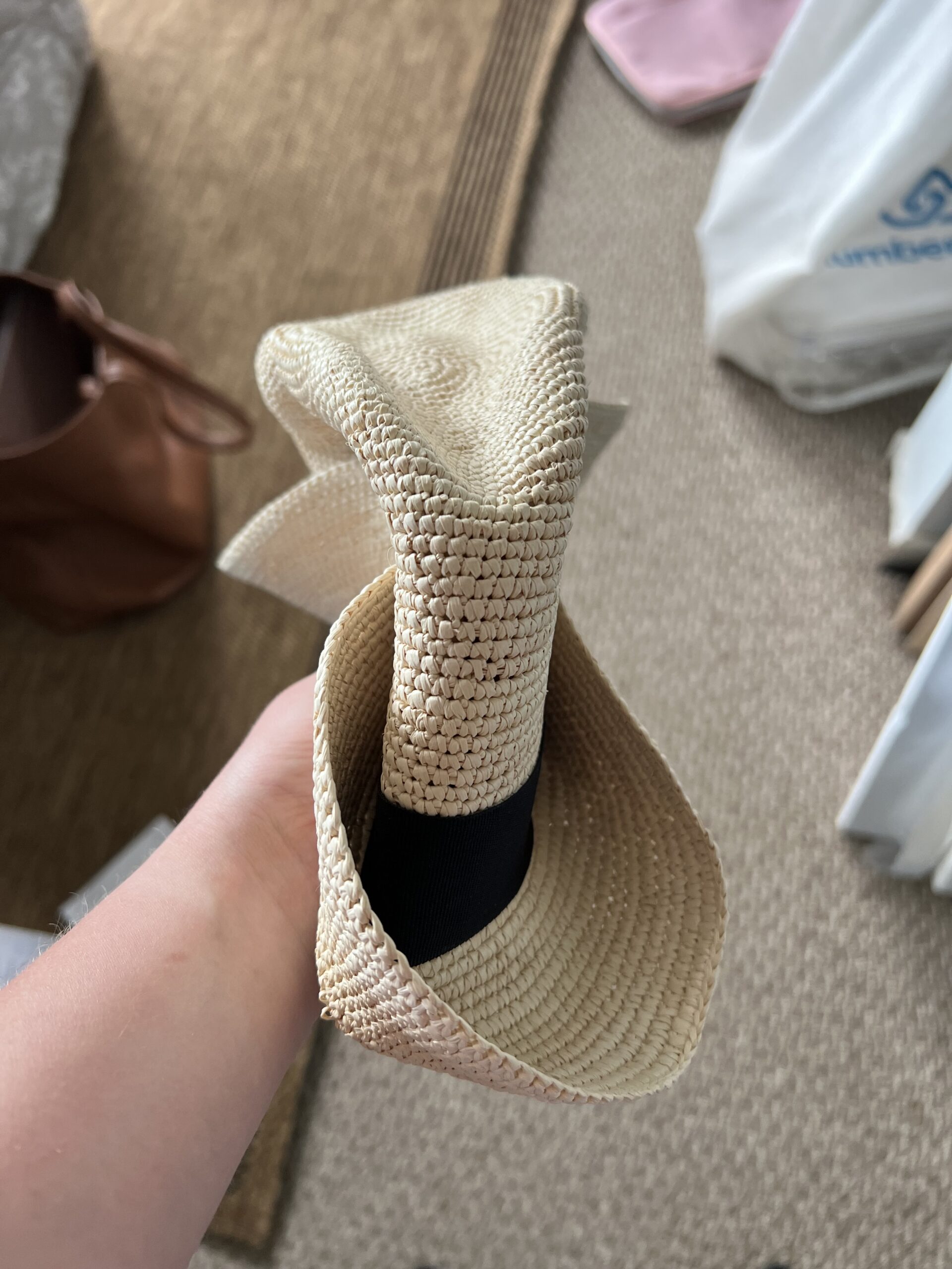 After a year of wearing my Ecuador Hat, I am finding that the brim is a little more wavy than I’d like — but it’s still cute, and works great for a little extra sun protection! My recommendation would be to stick to a less expensive hat for travel and opt for Cuyana’s wide brim hat to wear at home for just $10 more than the packable one. (Just remember to store it properly, in a hatbox if you have one!)