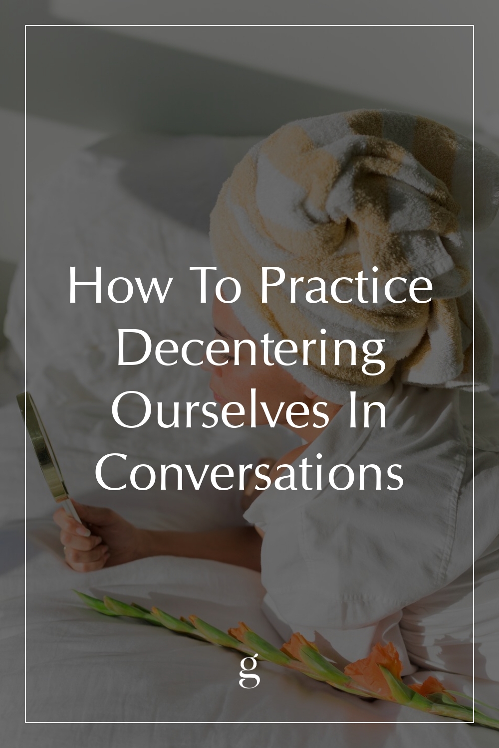 Centering ourselves means that instead of truly listening to someone’s experience, we derail or challenge the conversation by sharing our own. This harmful refocusing is always unsolicited and is an attempt to protect our privilege and make ourselves feel comfortable.