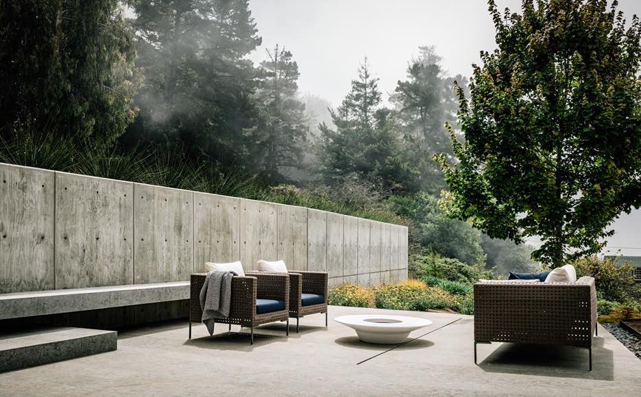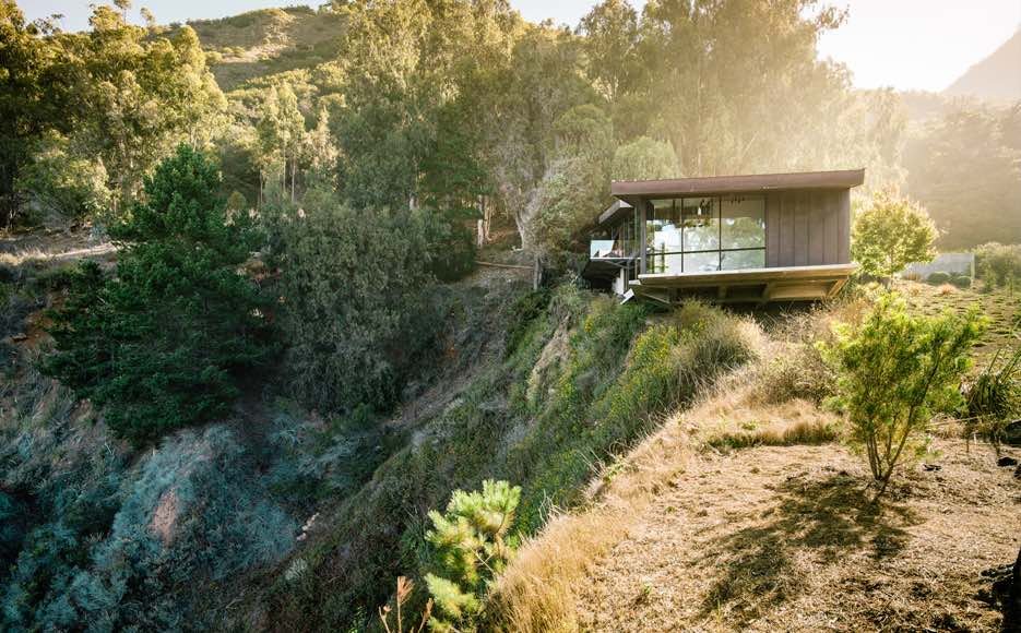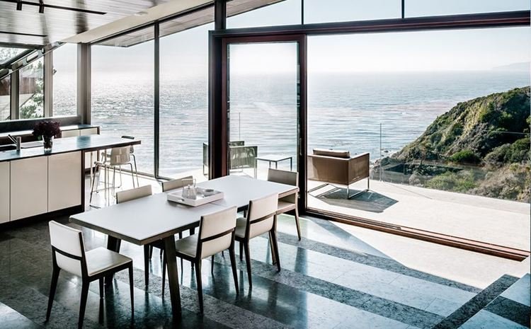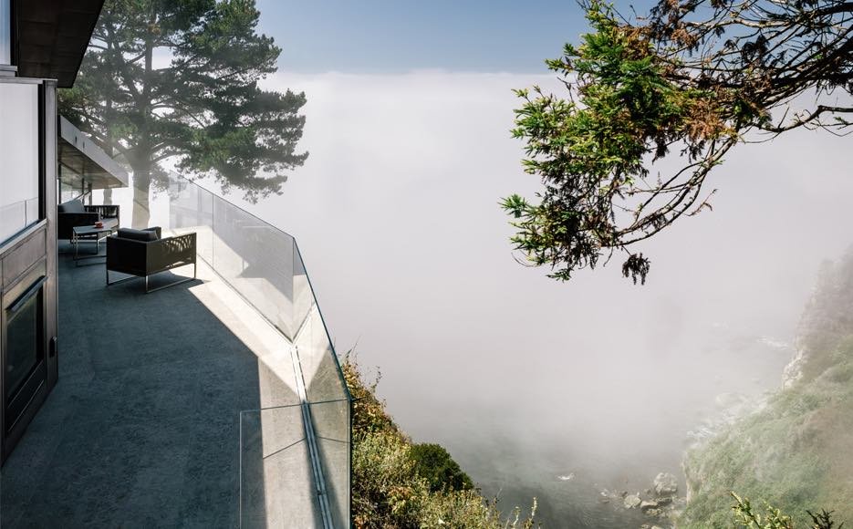 Fall house blends into the Big Sur coast. Fougeron Architecture designed the home with a full suite of sustainable features including “Low-E” windows, underfloor radiant hydronic heating and non-harmful insulation material. Fougeron Architecture also added natural vegetation to decrease soil erosion and support local wildlife.
