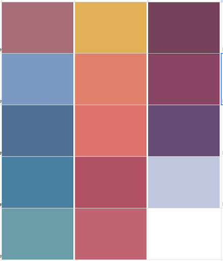 Once I narrowed it down to 50 options (I know, it’s a lot), I added them all to a Google spreadsheet and worked my formula magic to see them all together on the screen. While a screen won’t ever show you the color in its realest form, I found this helpful to see what energies I was being drawn to and which ones stood out to me the most. I was able to narrow my selections to five — one yellow, two blues, and two pinks.