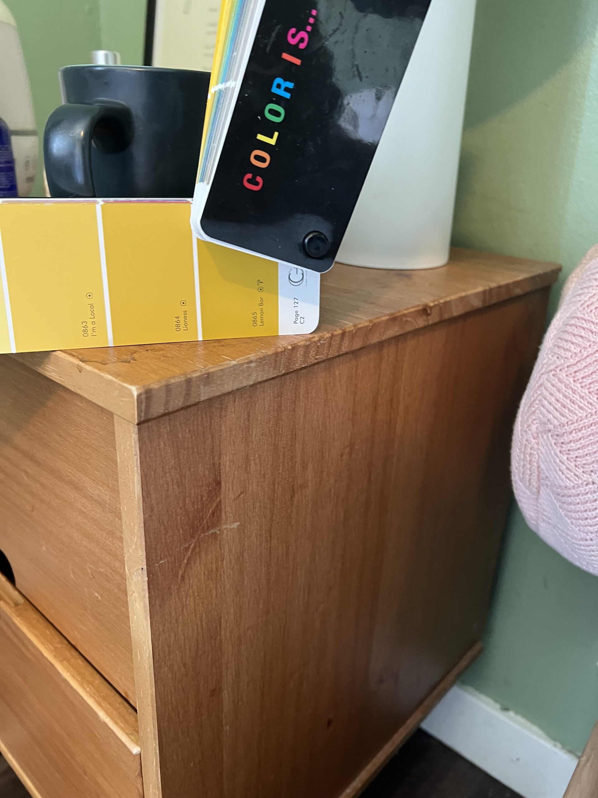 - 5+ hours of swatching the paints in my room, watching how they behave in the light, and contrasting them with my existing furniture