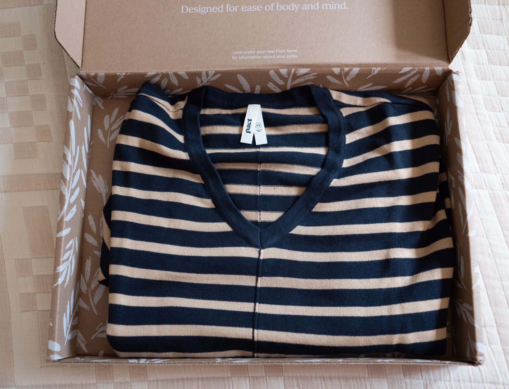 I adore Pact for its effortless, everyday styles, designed to be both comfortable and sophisticated. Along with their organic cotton essentials, you can count on them to be well-made and long-lasting. I opted for the Classic Fine Knit Relaxed Sweater ($98, XS). It’s incredibly soft and lightweight — the perfect throw-on and go essential. While taking it out of the package, I immediately noticed the textured cotton fabric; it has an unexpected, textured feel that sets it apart from a standard cotton pullover.
