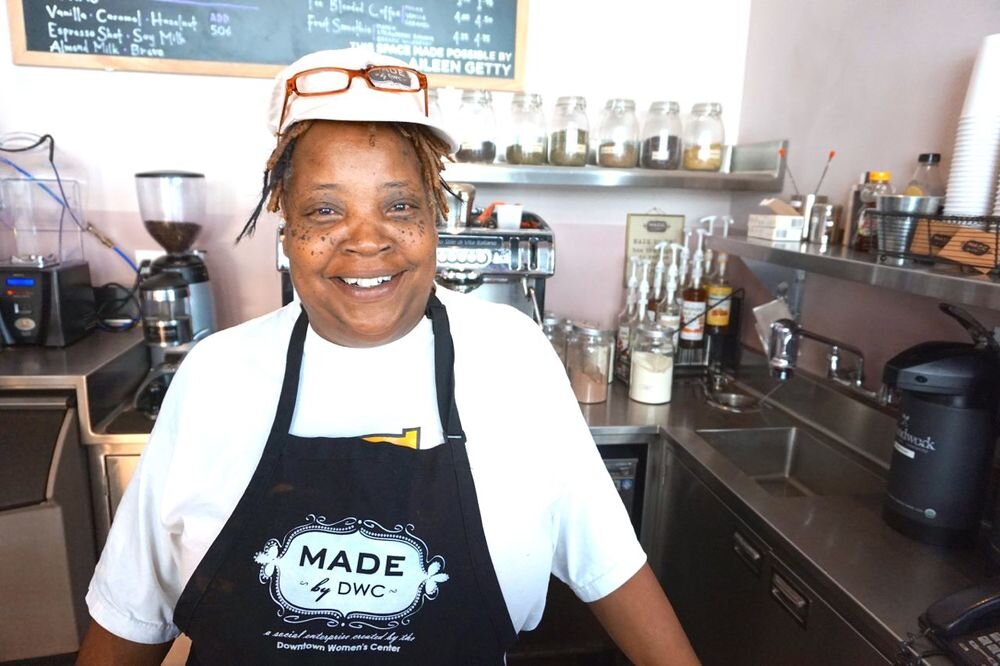 MADE by DWC Cafe and Gift Boutique is a bright and cheery cafe located at the Downtown Women’s Center near Skid Roe in Downtown, LA. The cafe serves organic coffee, teas and pastries sources from local companies like Groundwork, Simply Salad and their own line of handbaked pastry products. The cafe employs the women of the Downtown Homeless Center assisting in their transition from homelessness to self-sufficiency and all of the proceeds of the gift items go back to support the work of the Downtown Women’s Center.