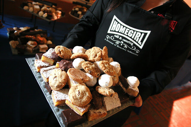 Greg Boyle is an LA native and has been working with youth in the LA gang culture for 20+ years. He started Homeboy industries in 1992 and his mission was to create an environment that provided training, work experience and the opportunity for rival gang members to work side by side. Homegirl Cafe is a division of Homeboy Industries and is a full kitchen, cafe and bakery that provides employees with fundamental job skills in a supportive environment. Along with job training in the cafe, the trainees also receive legal services, tattoo removal, education services and counseling services.