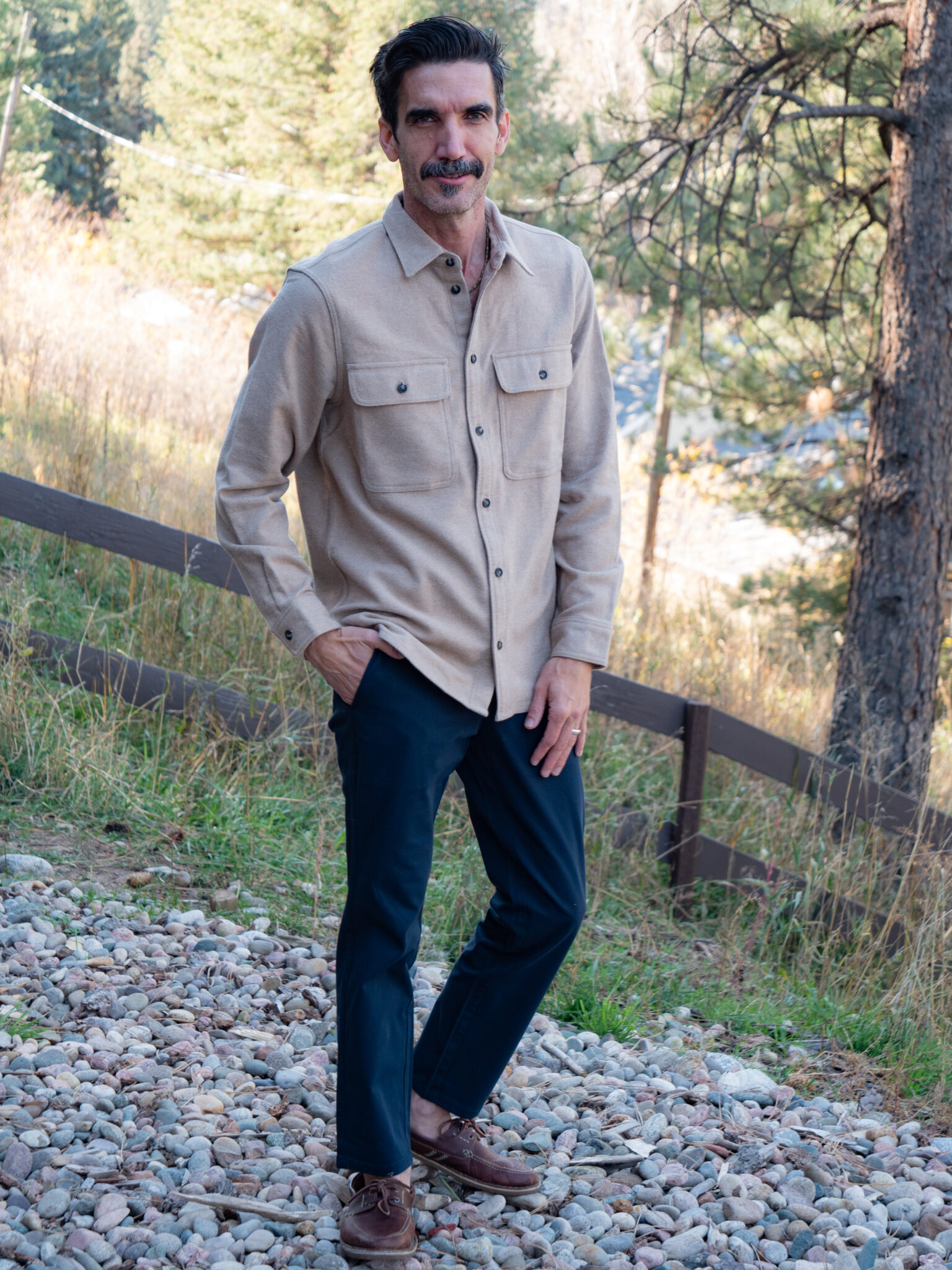 Cole’s review |“These pieces feel timeless and ready to be put to work. When I ordered the Dry Tin Cloth 5-pocket Pants, 30×30 ($159), and the Clarkston Jac-shirt, S ($159), I thought they would be made of a thick, rugged material, similar to Carhartt overalls. I was pleasantly surprised when they arrived because the material was lighter and breathable, yet still felt sturdy enough to withstand tough work. The attention to detail is incredible. The buttons and zippers feel like they will last a lifetime and have a sense of history to them. The colors and dyes are rich and appear to be well-suited for long-term use and weathering. Opening the box welcomed you into a piece of history with thick and beautiful tags and quality packaging materials—everything feels timeless about the brand.”
