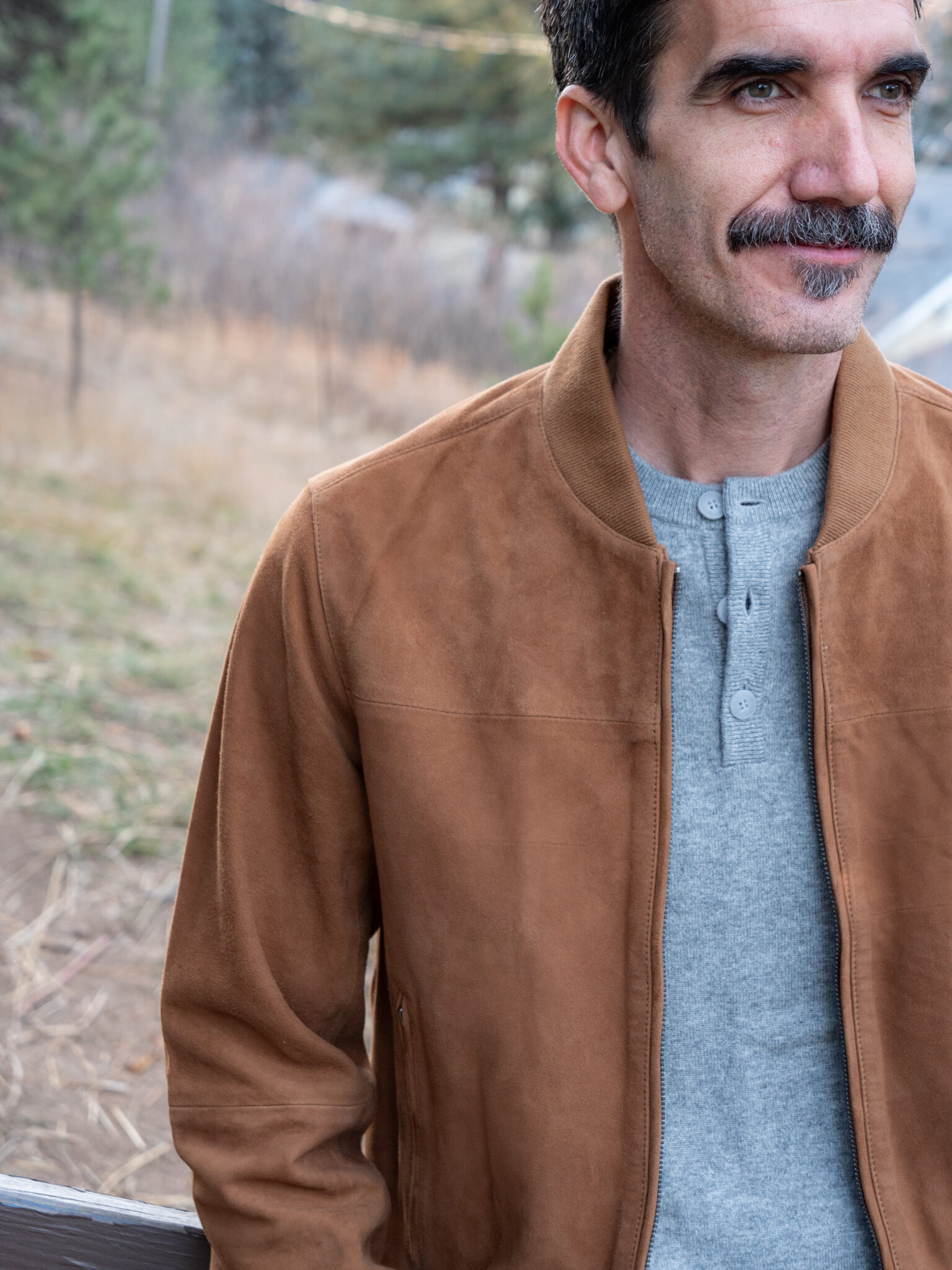 Cole’s Review | “These pieces and other quince pieces I have owned have such a sharp and put-together look. The 100% Suede Bomber Jacket, S ($200) is an absolute staple for any man’s closet. It’s fitted, with a sharp look that goes with almost any outfit. I love how the sleeves hug your wrist, almost locking you in as you slip the jacket on fully. Paired with the Mongolian Cashmere Henley Sweater, S ($79.90), the combo makes a strong put-together appearance. The Henley looks and feels amazing on its own and can be worn with any pair of jeans or trousers. It’s rare to come across a Henley that is cashmere, and it’s a wonderful, rounded piece to have in your wardrobe. Can be layered for many seasonal looks.”