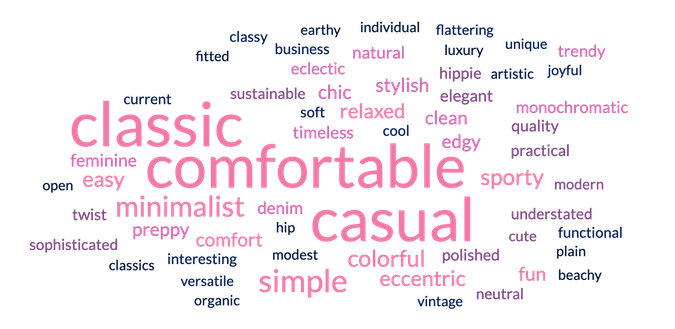 *One note, as I was reading the results, many readers described their style as “boho” or “bohemian”—and we’re thrilled that you all are embracing less mainstream styles that are driven by your own whims! But for the sake of this survey, I’ve updated that term to “artistic” instead. Those words above are tied to anti-Romani sentiment, alongside another commonly used term in fashion—all these words are based on sweeping generalizations, historical inaccuracies, and have encouraged harm against the Romani population. The more you know!