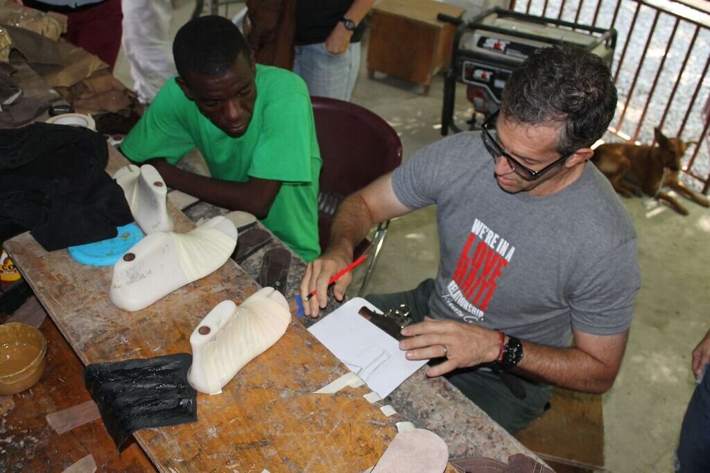 Kenneth Cole has been committed to rebuilding Haiti since the catastrophic earthquake 5 years ago. On his last trip, he visited the Deux Mains sandal workshop and in collaboration with Deux Mains shoemakers, Cole designed âThe Love-Haiti Sandalsâ to support the local community.