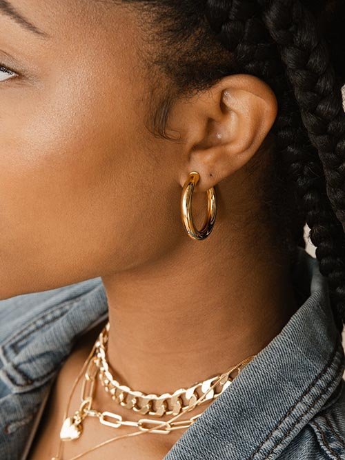 For minimalist yet unconventional hoops, consider the French-inspired Oceanne. This Black woman-owned small biz makes jewelry by hand in Cleveland, from the dainty anklets and bracelets to the gorgeous earrings. Though the hoops here are gold-plated (rather than gold filled or vermeil), they’re also incredibly affordable, starting at around $20. Whatever you choose, it’s sure to match or play off of any outfit.
