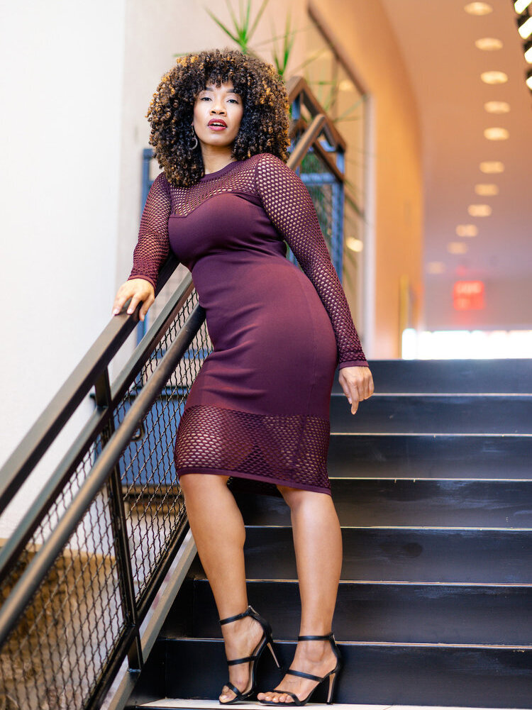 There’s a distinct mood change between a deep red and a bright ribbon-colored red, and both will have you feeling like the gift you are this holiday season. Blogger and podcaster Kamea Chayne stuns in a shiny red dress and proves that a red lip is the best accessory this season. If you’re in sub-zero temps, add some black tights or socks for a little extra warmth.