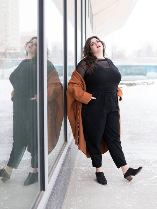 Marielle Elizabeth has a minimalist style that we’re constantly swooning over. And, yes, this is another monochromatic look—but look how chic it is! Take her lead and add a pop of color with lipstick and a statement coat for a great day-to-night outfit. We also love the idea of layering a sheer top under a jumpsuit to get some more cold-weather wears out of our summer wardrobe.