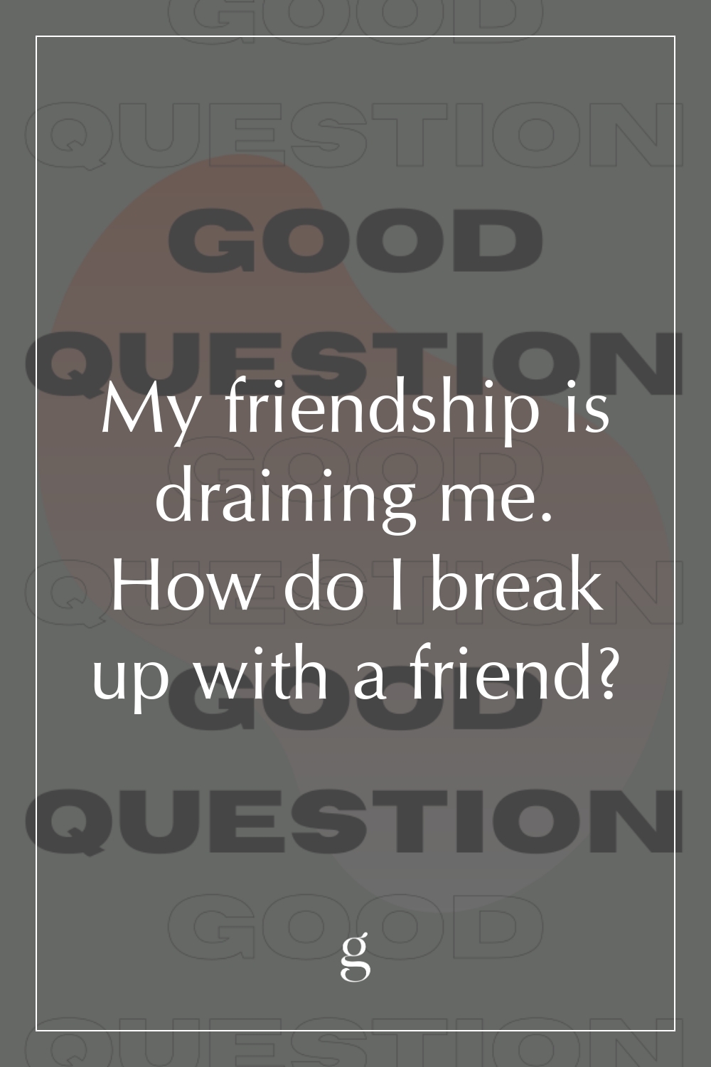 There is a friend of mine who has known me for 23 years—we are family friends. Since I moved back home and we reconnected, I am so disheartened by our friendship. I don’t feel valued when we hang out, I feel miniscule—like my thoughts, feelings, and opinions mean nothing, that her problems are always worse, and her opinions are more important. I feel bulldozed all the time and feel so much frustration. Our friendship is draining me every day. How do I break up with a friend?