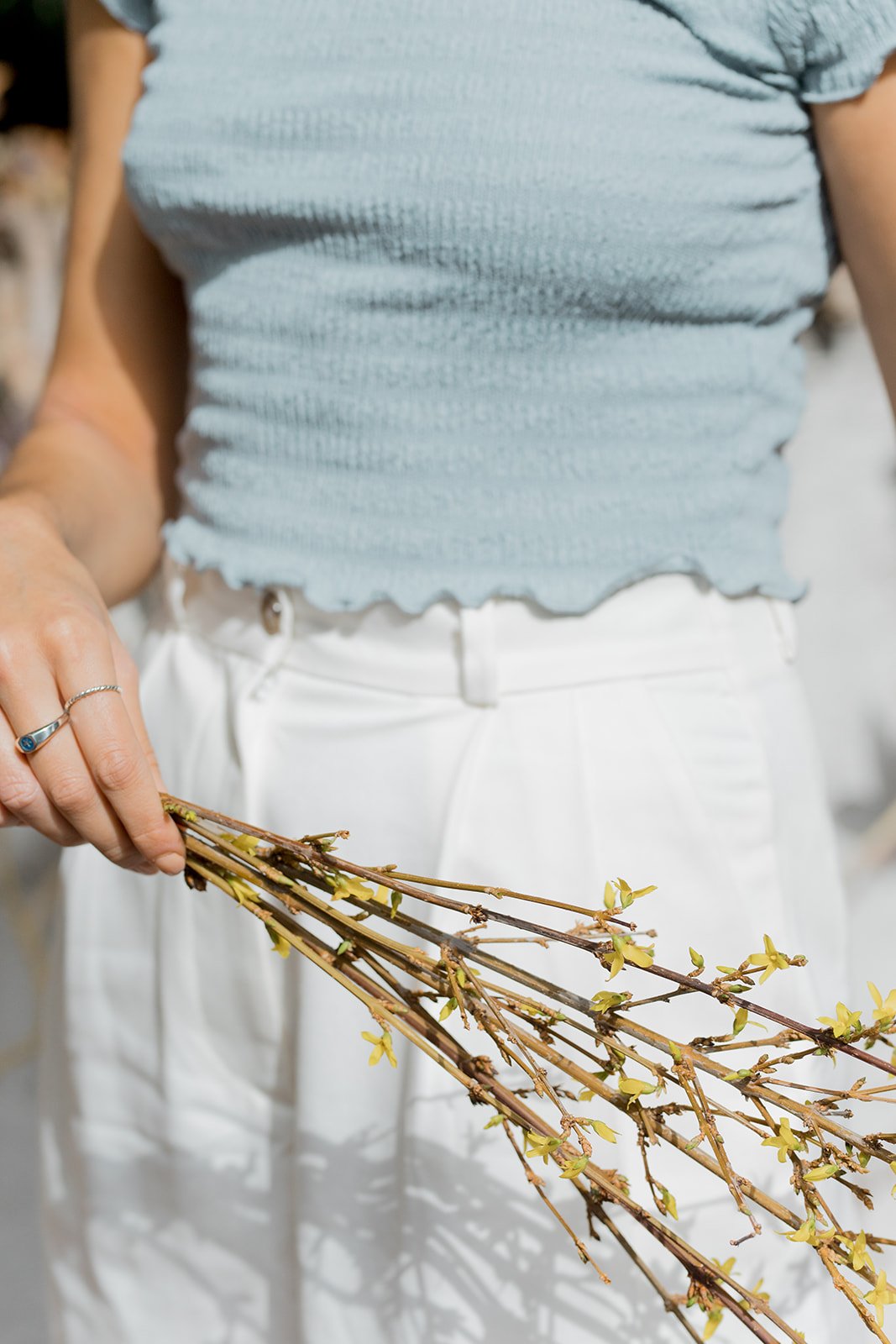 Featured image includes model Norrine Maupin wearing shirt by Reformation; pants by Shaina Mote; jewelry by Apse.