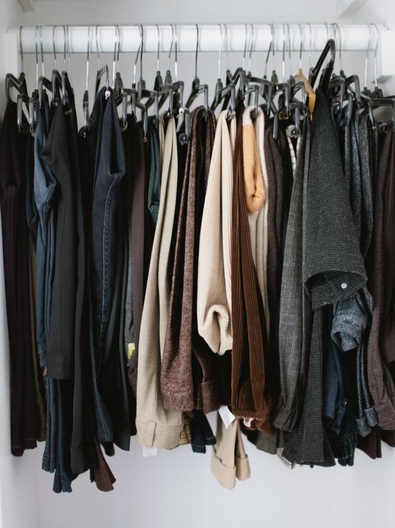 Most importantly, you need somewhere to hang your clothes. This can be demanding in some spaces, though—I argue—not impossible. Tops, dresses, nice pants, and jackets should be hung up to give you an easy visual of your closet. If you can’t see it, you won’t wear it. Trust me.