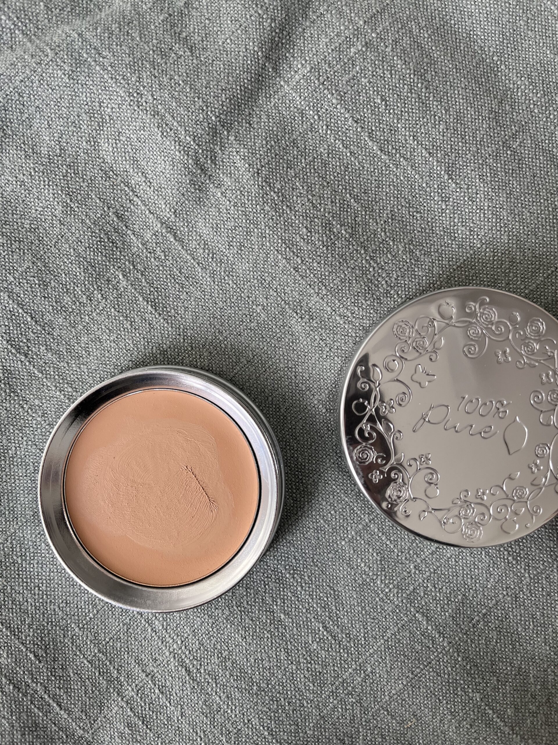 100% Pure’s Fruit Pigmented Cream Foundation is the first foundation I’ve ever used that comes in a tin, meaning it’s super lightweight and easy to travel with — plus it’s easily recyclable, too. Pigmented naturally with fruit and cocoa beans, the solid-form foundation still has lots of slip — its number one ingredient is avocado oil. In fact, take a look at its ingredient list and you’ll see it’s made of nothing but different plant extracts, like pretty much everything else at the small company. It blended out easier that I thought it would with the damp sponge, giving a pretty medium coverage. Its finish is more satin than dewy and by the end of the day it was settling into my smile lines a tiny bit — so it’s probably unforgiving on super dry skin types. My shade, “white peach,” seemed a little orange at first (“creme” might have been a better shade match) but blended in well — note that the brand only has seven shades, so not a great shade range.