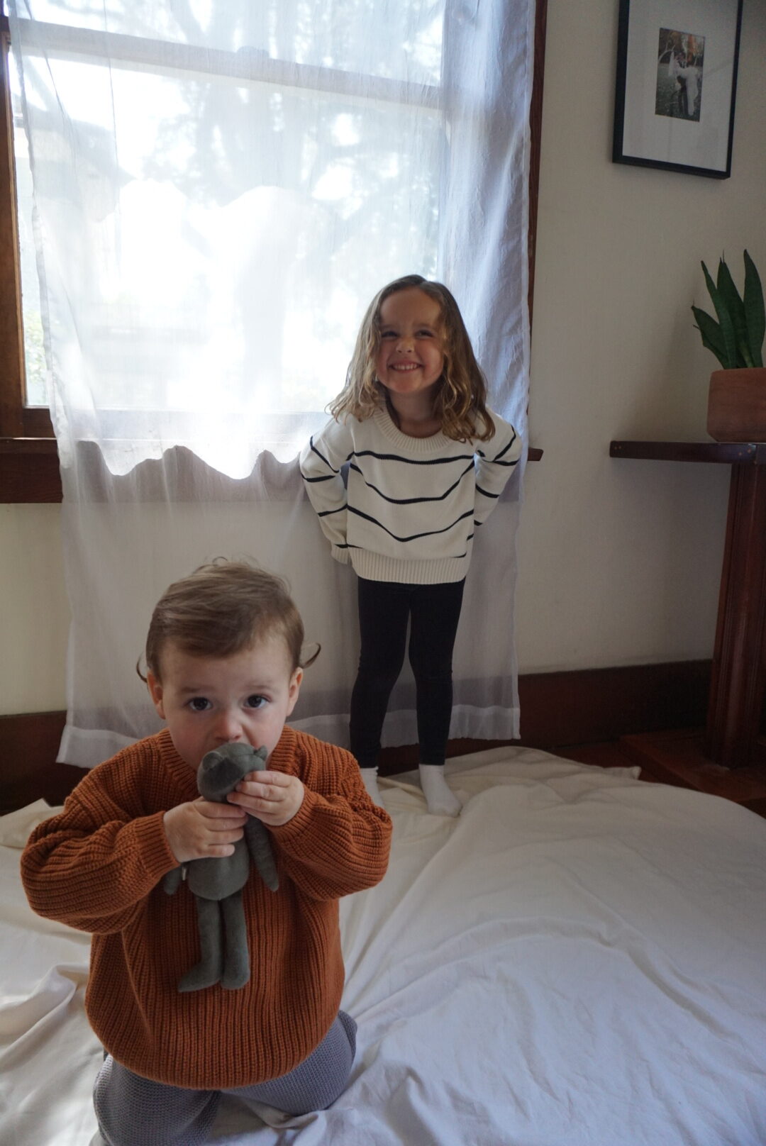 There’s no way around it, kids are hard on clothes — which is why when shopping for mine I typically shop secondhand. But when I am looking for something specific or if loved ones ask which brands I like, I’ll list one of the brands I’ve spent the last four years vetting. When searching for brands to buy new, I look for something that my kids will be comfortable and safe in (definitely no harsh chemicals!) and something that will weather the wear and tear of childhood. I also strive to remain mindful that our daily choices have an impact far beyond our family. When I look at my little ones, I’m reminded that they are just two of the many precious children around the world — so it’s important to me that we consider ethics whenever possible. I’m also reminded that they will one day inherit this planet from us, and I want to do everything I can to treat it with love, gentleness, and respect.