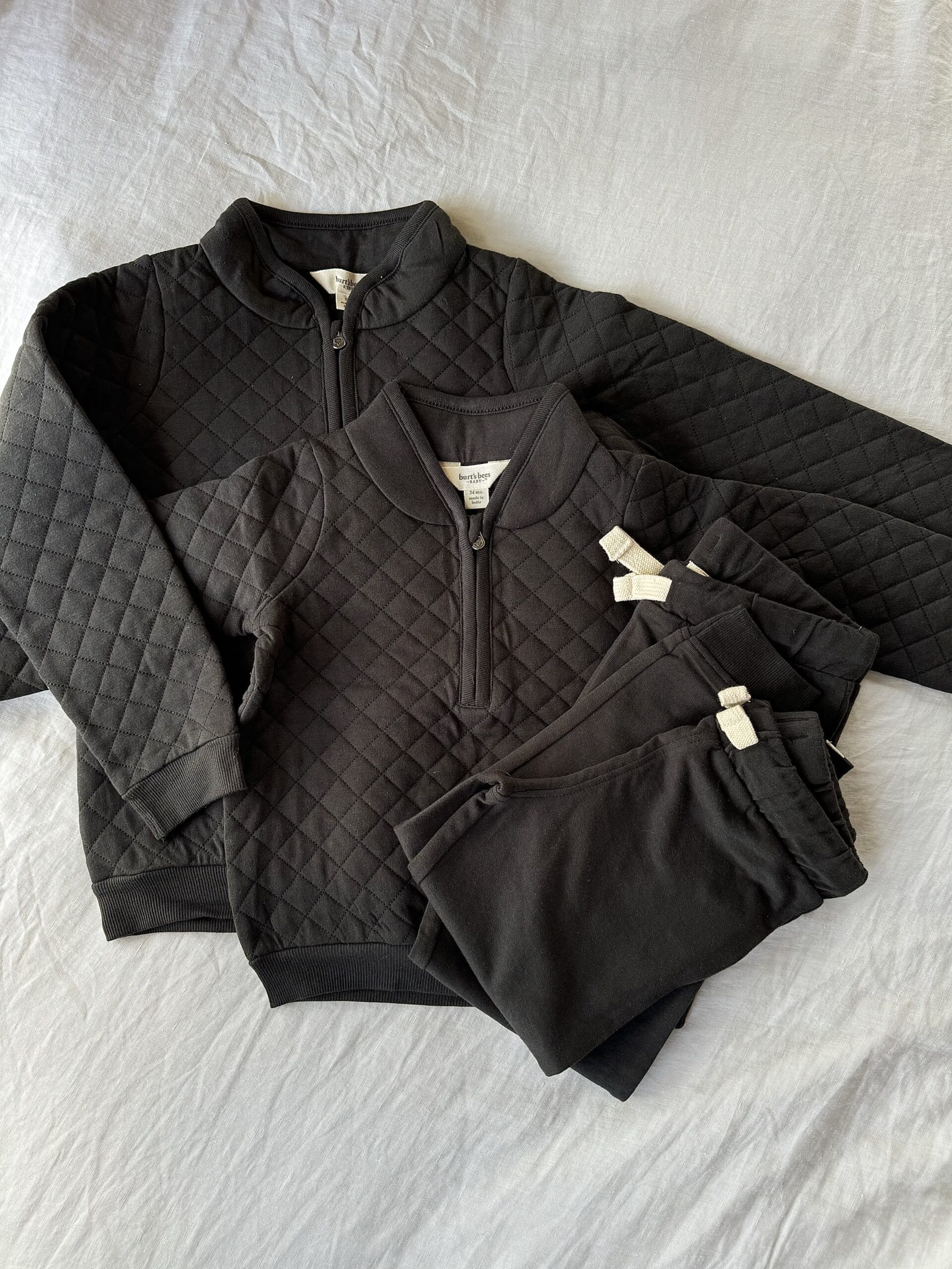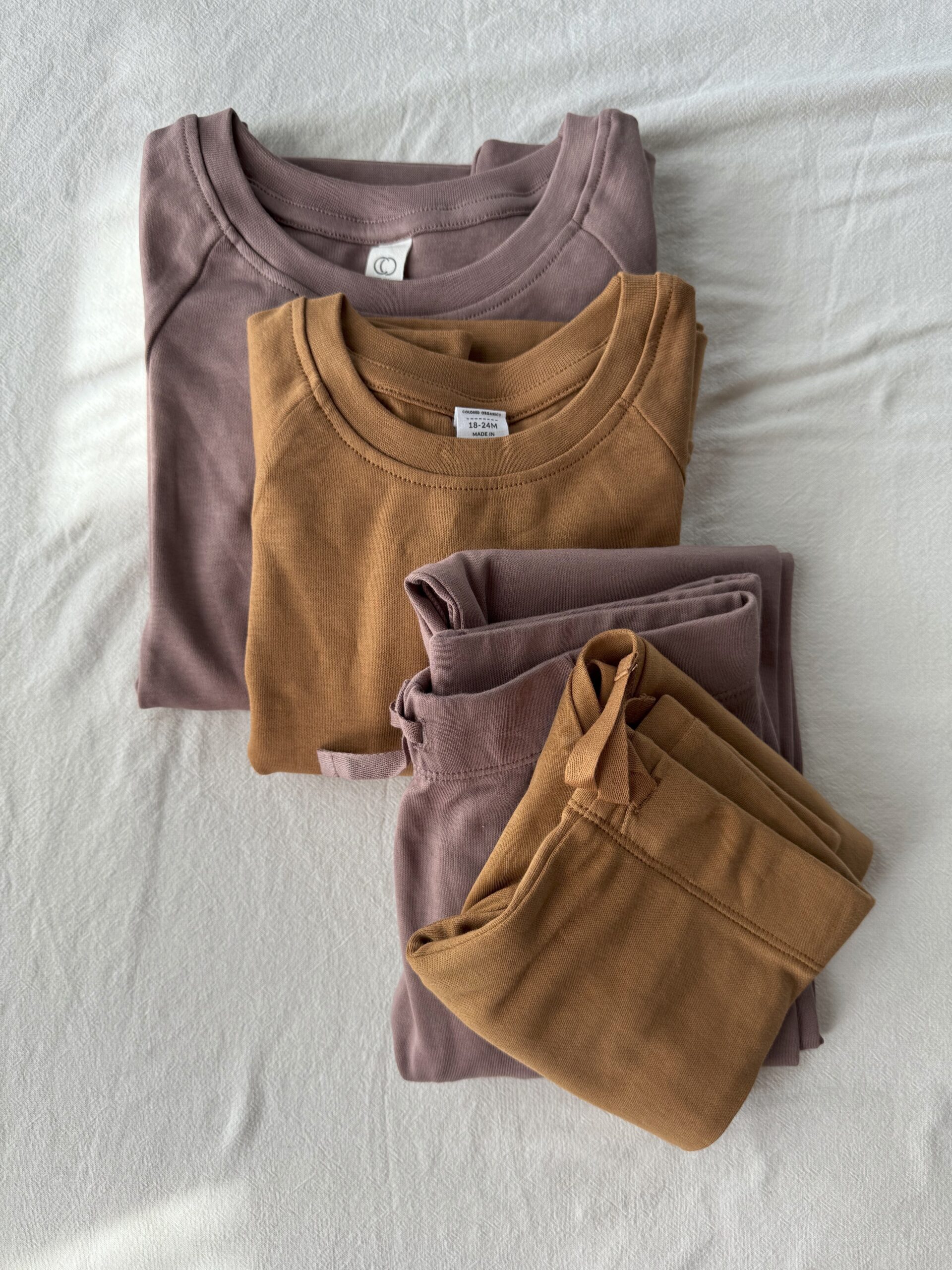 Did you know Burt’s Bees makes clothing in addition to bath and body care? I didn’t either! With a GOTS certification for the highest standards in organic textiles and just like their cosmetics, they’re predictably committed to making their goods affordable and safe. The quilted sets they sent were lightweight yet plush and washed exceptionally well — I actually preferred the feel and fit once we’d washed them a couple of times! They held up after an evening of crawling, climbing, and running around way past bedtime at our local football game. I noticed the bottoms run slightly longer than other brands, but the cinched ankles and drawstrings made these sets ones they’ll wear now and well into next season, too.