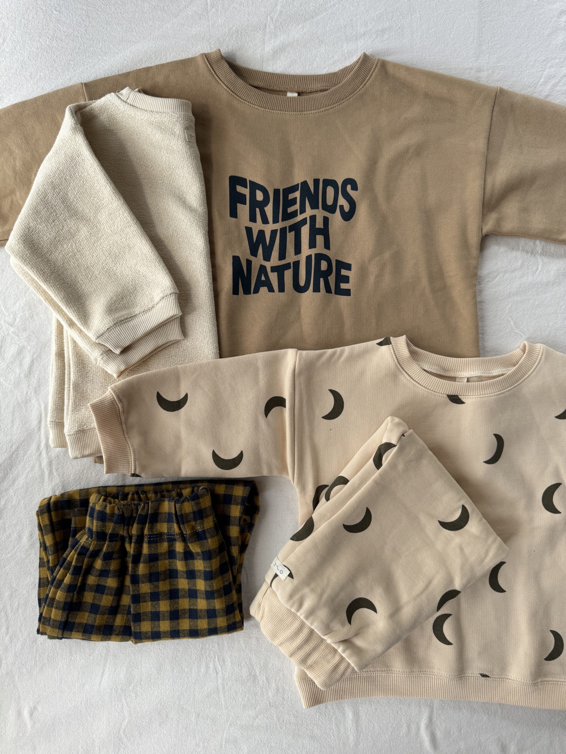 Inspired by the richness and simplicity of her own childhood, Organic Zoo’s founder Paulina wanted to make clothes that children could wear while fully embracing play, imagination, and wonder. Each piece is designed in England and ethically manufactured primarily by women at a small factory in Ukraine. This brand resonated deeply with me as someone who was raised to appreciate the land and the abundance the earth has to offer. These minimal, comfortable, and high-quality items are made to be played in, passed on to the next generation again and again, and returned to the earth when they’ve reached the end of their life. Organic Zoo offers to rehome outgrown garments with their buy-back program, too. For those shopping in the UK, this is a great option.