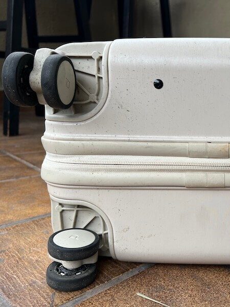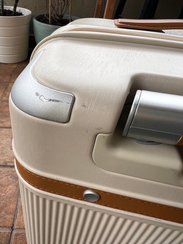 By the end of my trip, my beautiful beige bag had sustained several scuffs and scratches — which haven’t come off with gentle cleansing, so I may do as the brand suggests and use a magic eraser. The suitcase did come packaged in a soft black canvas cover, which I probably should have popped on when I gate-checked the suitcase at LAX. (Rookie mistake?) Despite the cosmetic damage, I can say that none of my belongings were damaged in my travels, even when I had to book it a mile across town in the rain.