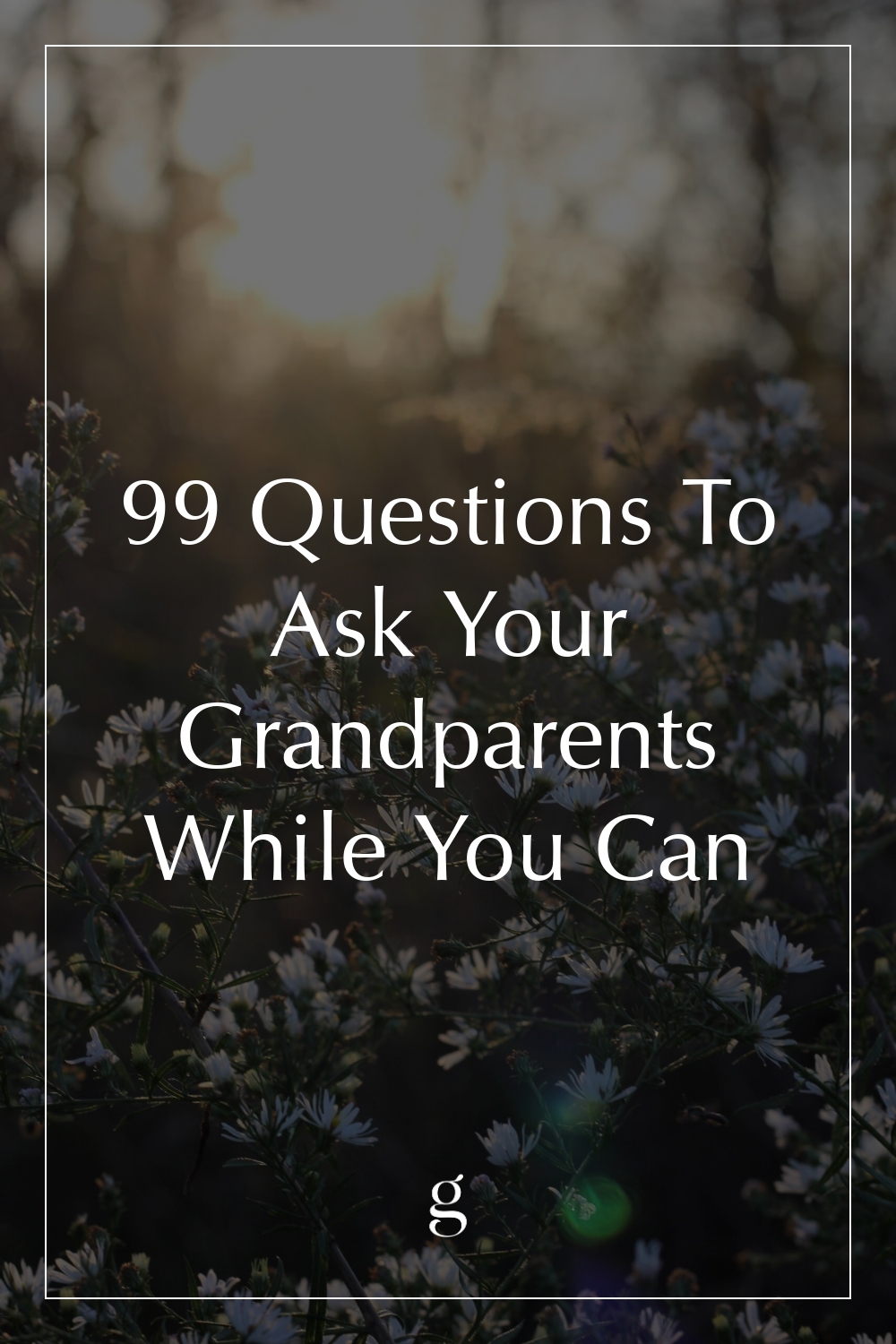 If you are lucky enough to have a positive relationship with your grandparents and they are still around, I encourage you to ask some of the 99 questions below. You can also transcribe their answers like I am doing now with my parents, or journal through a question each time you’re together. You’ll learn more about them, your family, and yourself along the way. 💕
