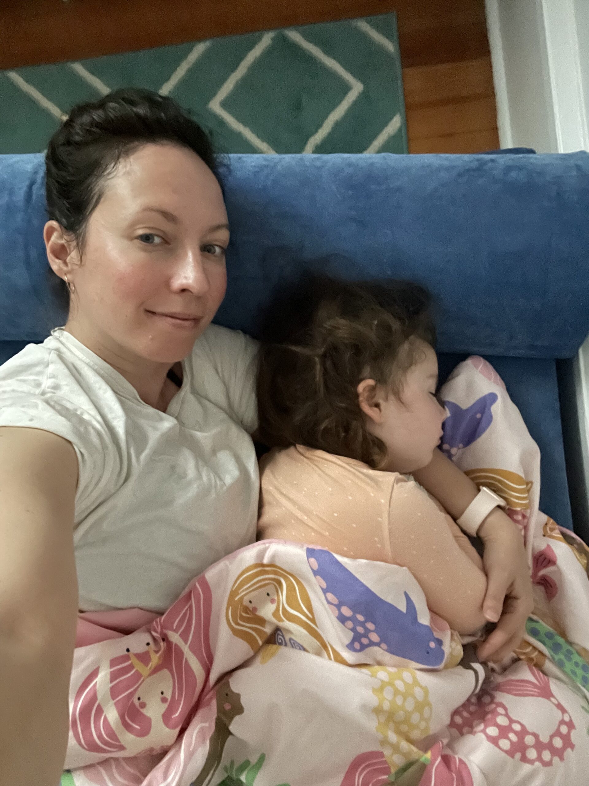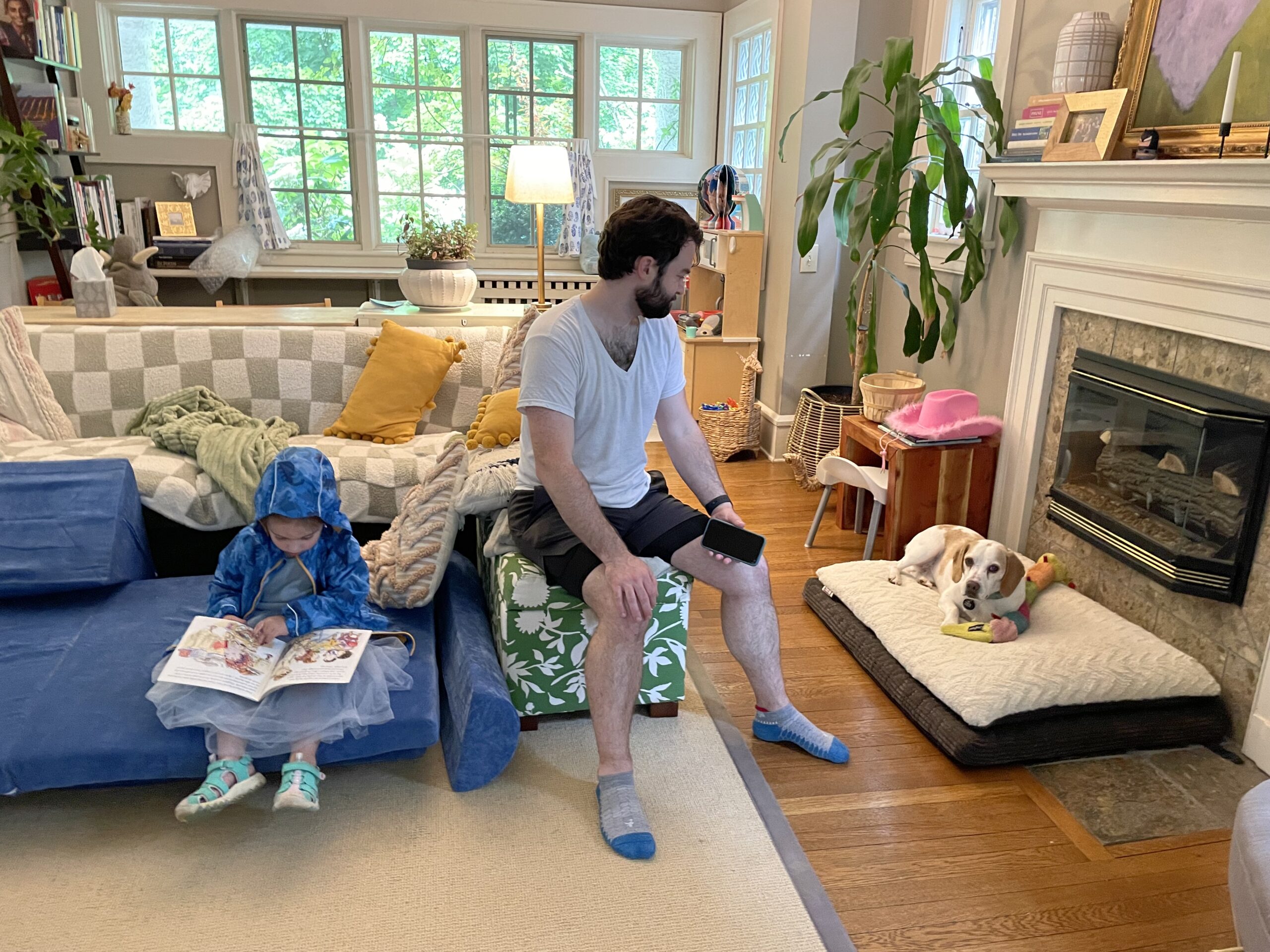 The couch has become a regular and versatile player in our lives. Whether we are using it for family reading time (scrunching up in her toddler bed just wasn’t cutting it anymore!) or creating a castle fort or just using it to tumble around, it is comfortable, sturdy, and looks good in every room. I was worried about the size, but since we use it as a couch most of the time, it’s actually pretty perfect: my husband, daughter, dog, cat, and I can all sit on it together, with the armrests, very comfortably. When my daughter was sick, I was able to use it as a daybed in her room, and we have also napped together on it a few times. I can imagine it being the perfect spot for one of her friends to use for sleepovers well into high school, which makes it truly worth the investment in my book.