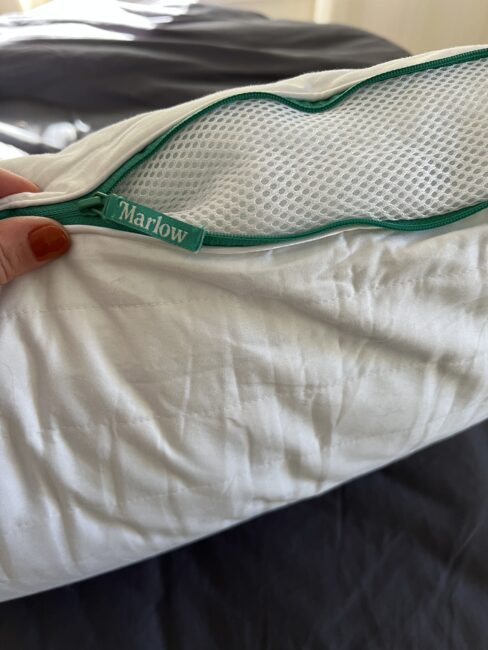 Their Marlow pillow is US EPA registered, BPR compliant, and OEKO-TEX certified. Made with cooling-infused chopped memory foam with breathable mesh, the Marlow is 100% vegan and allergy friendly with a 100% cotton, 120 GSM sateen fabric shell. The coolest part? The Marlow comes with two zippers for adjustable firmness. For firm, keep it zipped up; unzip one side for medium firmness, and unzip both sides for a plushy, pillowy sleep. I like a firm pillow which makes me a one zipper woman. But I could change, and if I do, I like that my pillow can change with me.