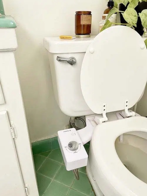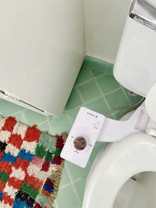 In our 1950s apartment, the TUSHY fits seamlessly and goes unnoticed. I’ve heard that the newer option, ~the 3.0~ comes with an auto-wash nozzle, aka a nozzle that cleans itself every time it’s been used. Our classic version doesn’t include that feature—instead, it features a “nozzle wash” vs. “bum wash” directional on the single knob. That feature alone may be worth an upgrade; but for now, we’re happy with having the cleanest booties on the block, even if we have to spray-clean the nozzle ourselves.
