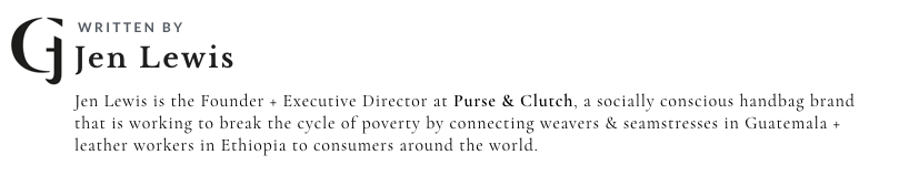 Social Mission | Purse & Clutch is a socially conscious handbag brand that seeks to provide modern, fresh essentials for the everyday woman while employing artisans from Ethiopia and Guatemala with the end goal of breaking the cycle of poverty. Beyond just connecting artisans to the global market, they oversee design and production for the talented artisans on their teams as a way to support long term employment opportunities.
