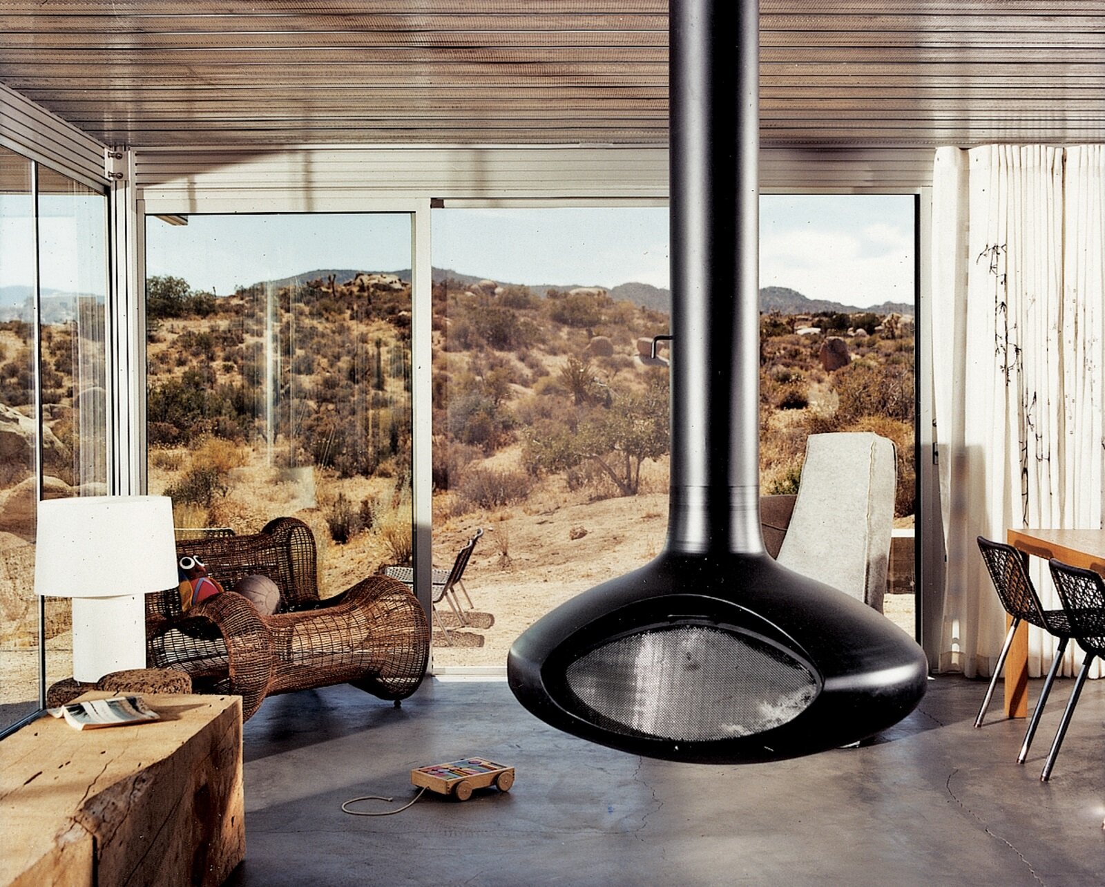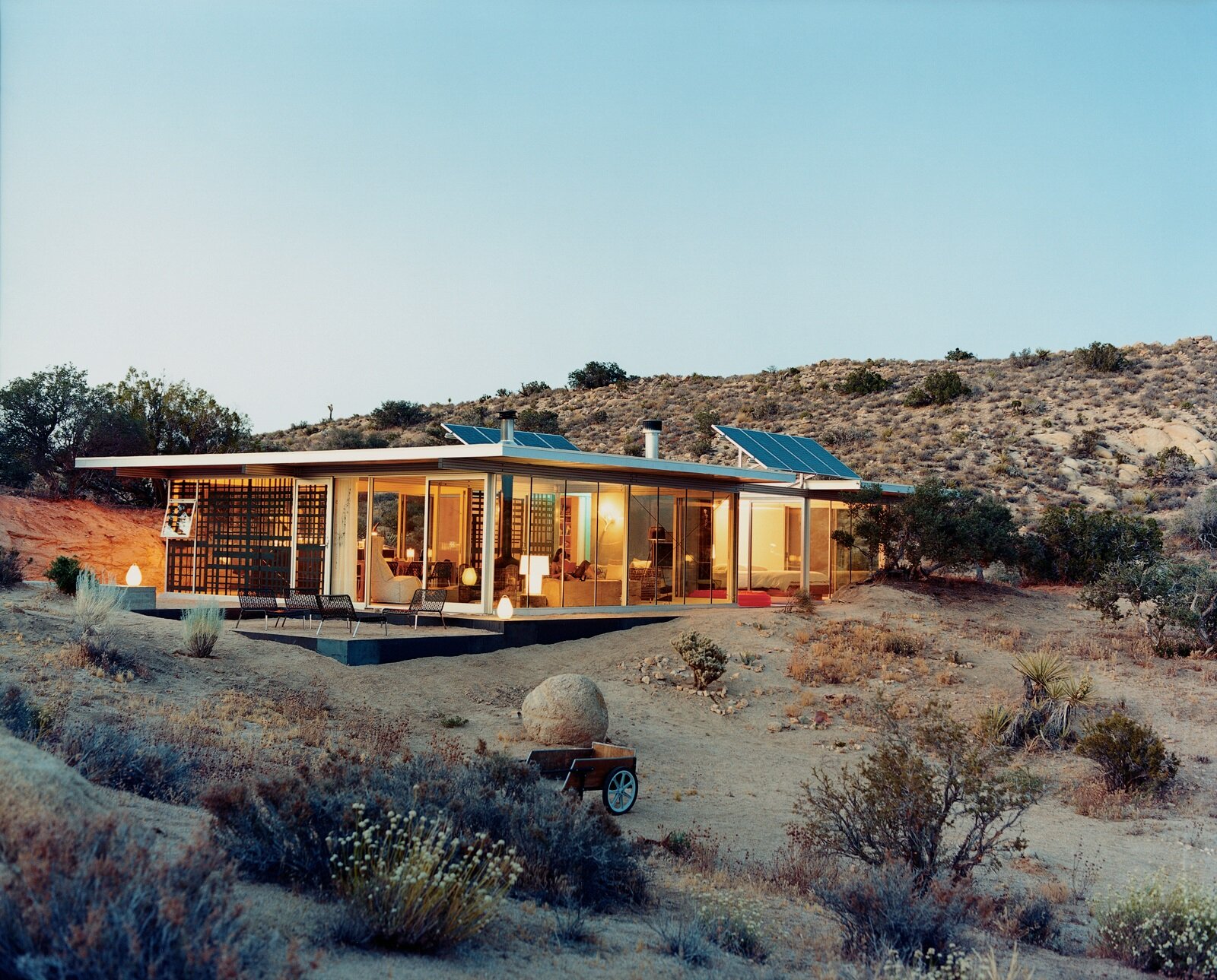 Location | Pioneertown, CA Eco-Friendly Features | Solar panels, sliding doors made from Solarban 60 Glass, minimal living, fresh pressed juice delivery Features | Designed by architects Linda Taalman and Alan Koch, secluded in Joshua Tree National Park, Casper mattresses, suspended wood burning fireplace Nightly Rate | $380+