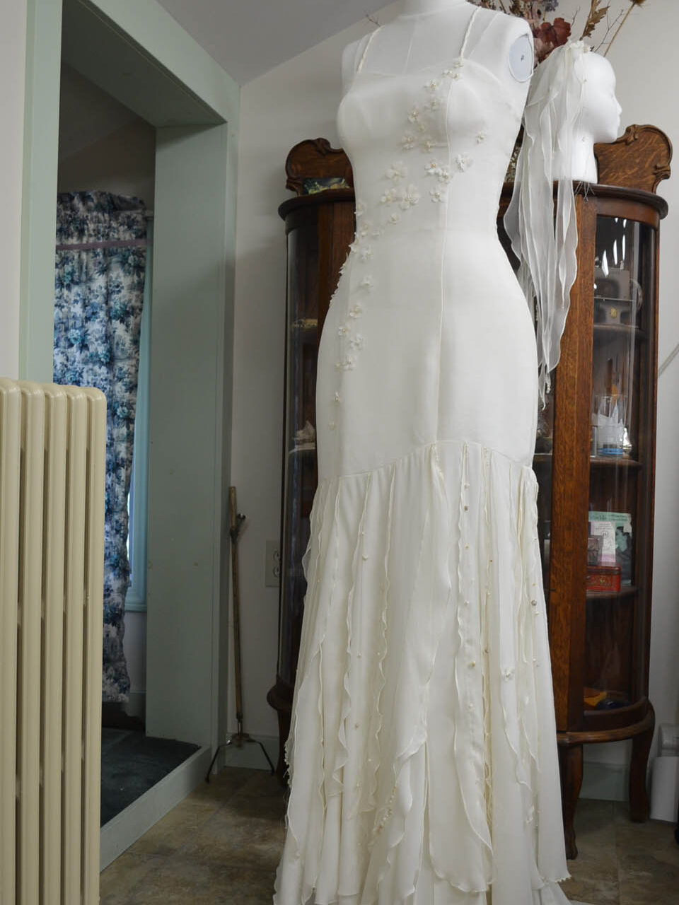 Tara Lynn is known for her highly unique, one-of-a-kind wedding gowns and suits which utilize colorful vintage fabrics, lace, beads, buttons, and trim. Many dress styles are bespoke, sewn specifically for the bride in mind, and the designer works with the bride to make personal modifications and unique embellishments. Tara Lynn’s inspiration comes from a love of nature and her research in flora and fauna. Brides from all over travel to her solar-powered studio for eco-couture, custom dresses.