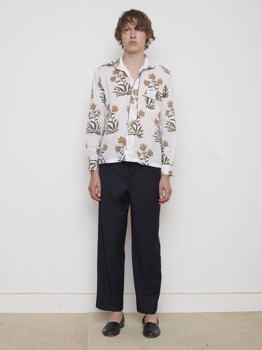 Two years is all the time that Emily Bode needed to become menswear’s buzziest name. Her eponymous label, Bode, is based out of Manhattan’s Lower East Side and has reinvigorated the streetwear-saturated men’s market. After sourcing vintage quilts, linens, and tablecloths from artisans and collectors, Bode upcycles them into delicate shirts, patchwork jackets, and high-waist trousers. It’s grandeur with a story.