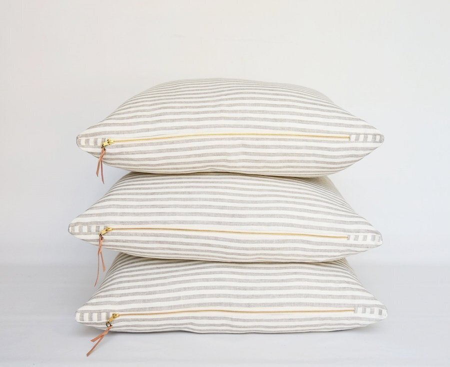 Made in the USA, 100% linen, 27” x 27’“, hypoallergenic polyester fiber fill