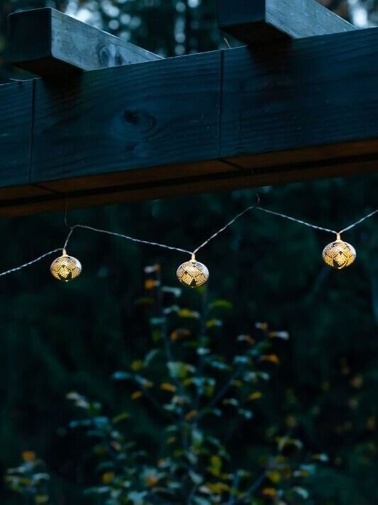 15-foot strand with 10 weather-resistant lanterns, powered by solar