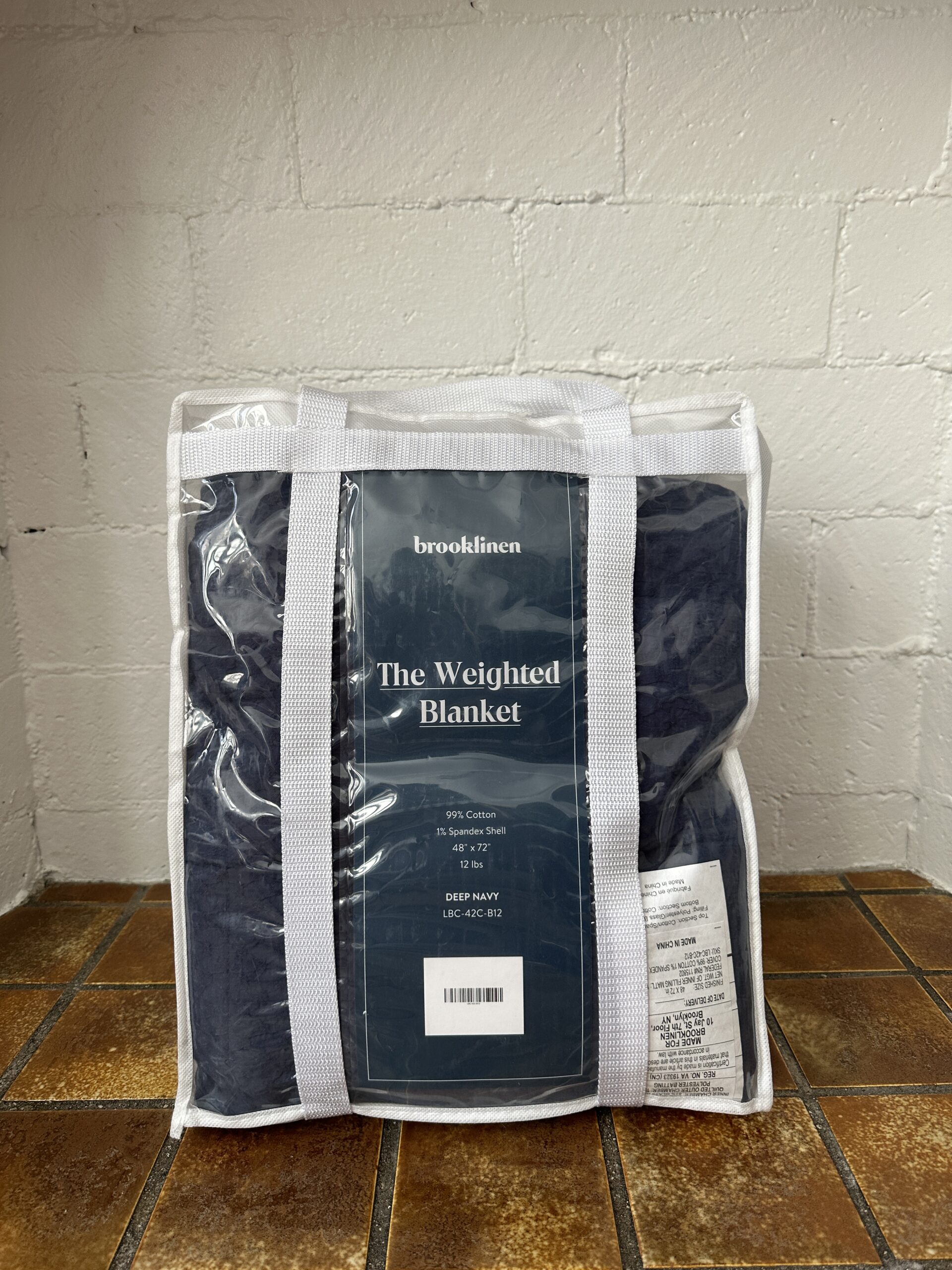 Brooklinen is well-known for its bedding and linens. Their weighted blanket is made from 99% cotton and has a quilted design on one side and a soft-washed cotton texture on the other. Inside, there are glass beads! The blankets are available in one size and weight, and there are two color options to choose from, making it a simple shopping (or gifting!) process. Brooklinen partners with Good360 to distribute returns to donation centers across the country, and they also work with New York City-based Animal Haven, giving them bedsheets to create makeshift beds for the animals in their shelters. My sleep with Brooklinen’s weighted blanket was great. The quilted look does make it look nice in my space, no duvet needed. I loved the consistent pressure this blanket provided, and the weight was really well-distributed. My sleep was really deep using this blanket.