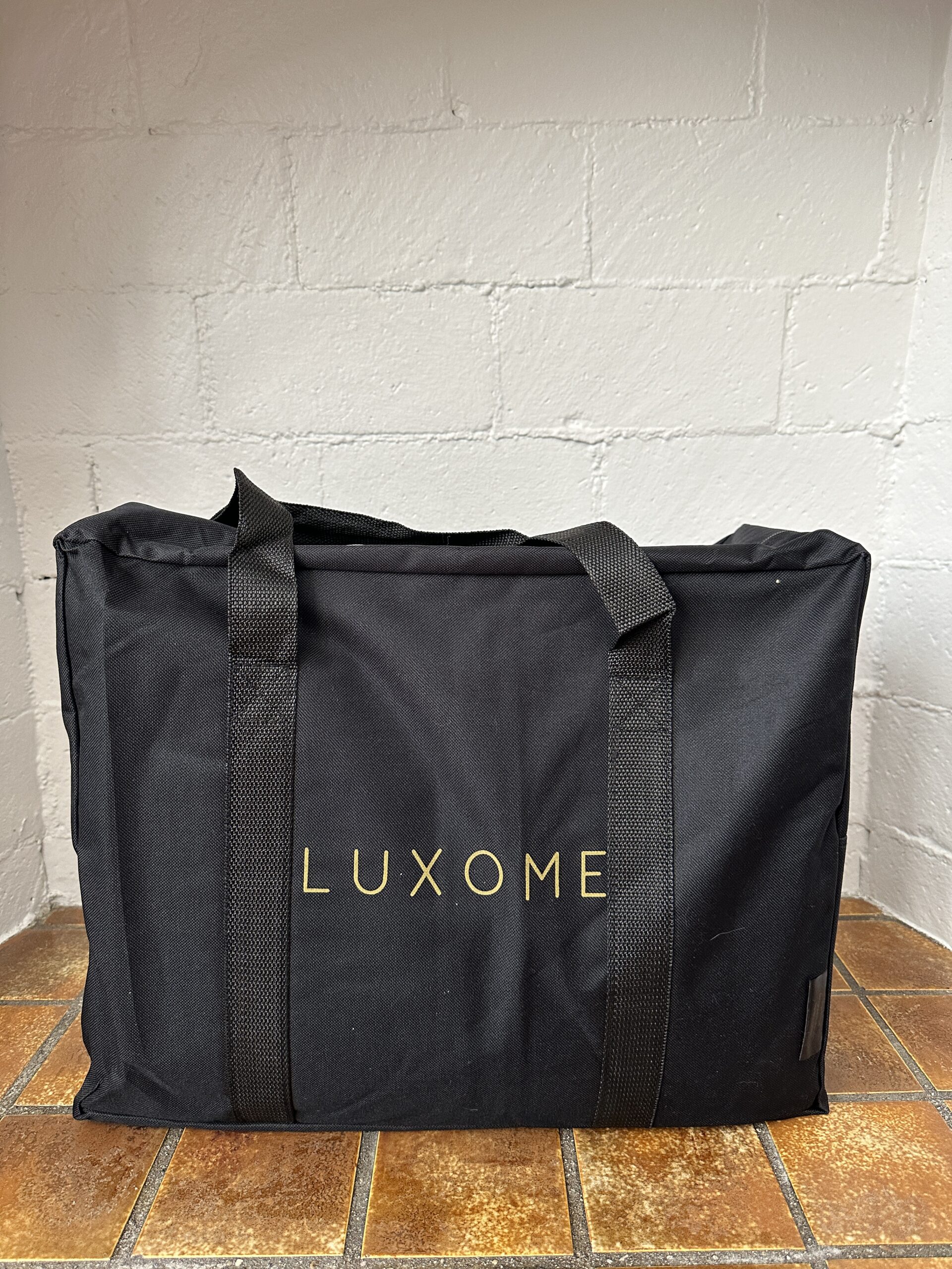 Luxome’s weighted blankets are hypoallergenic and made from high-quality materials and lead-free glass beads. They offer both removable and integrated cover options, as well as a choice of a soft Minky material, bamboo lyocell, or a combination of both. They’re all machine washable and come in a carrying tote. Luxome uses bamboo to make its blankets because it uses less water to grow, regenerates by itself, and does not require fertilizer or pesticides, making it a more environmentally friendly fabric option. For my test, I slept with a 15 lb Bamboo Lyocell and Minky blanket, the one with the removable cover. Of all the blankets I tested, this one was the “fuzziest” material, making it very cozy to cuddle up with in bed and making it one of the warmer options. It was also one of the heavier blankets I tried, even though on paper it was the same weight as several of the other ones. So if you’re looking for deeper pressure or a fuzzy blanket, this is definitely a great choice for you.