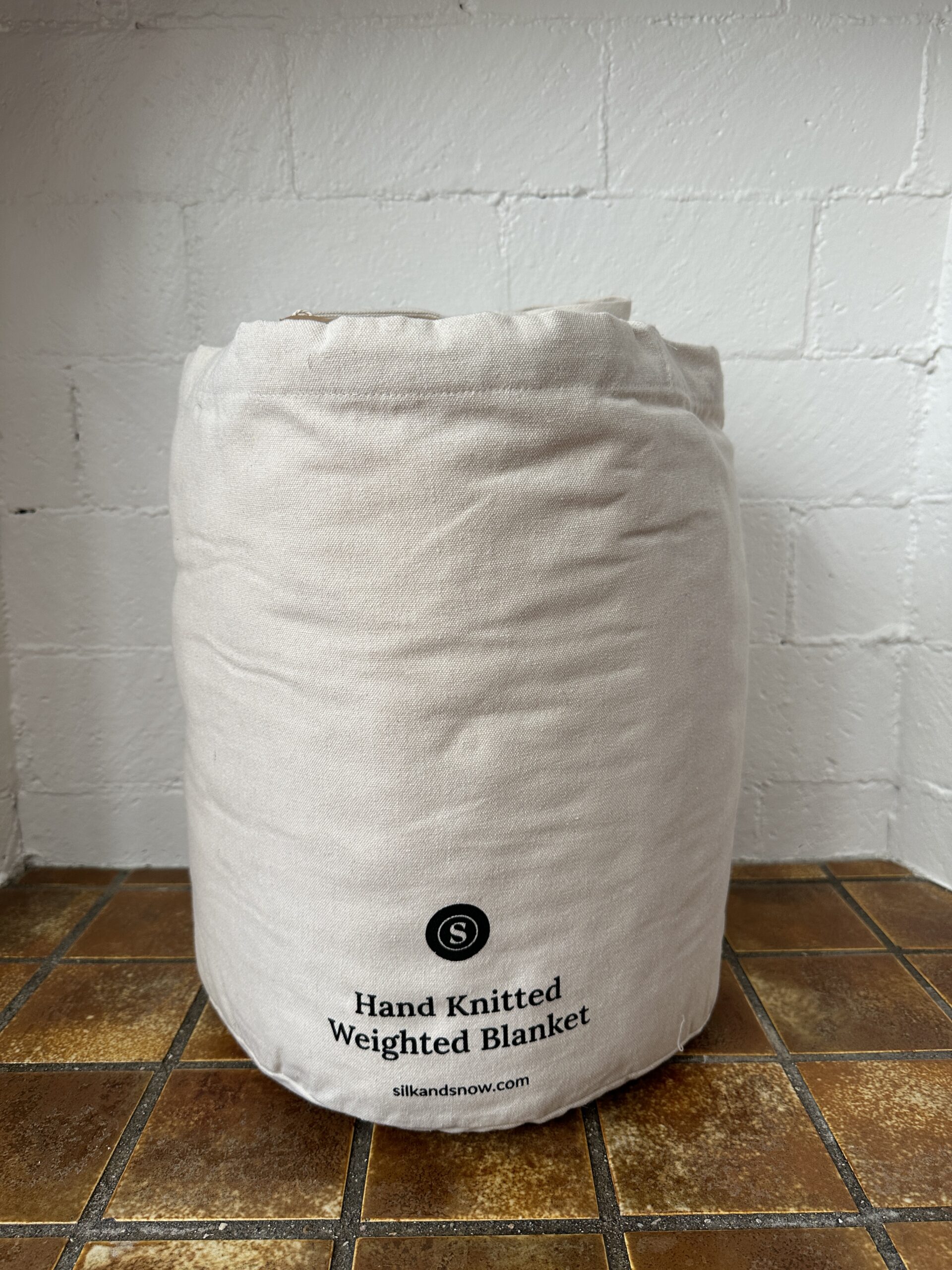 Consciously made in Canada, the weighted blankets from Silk & Snow are hand-knit, machine washable, and made entirely out of natural cotton. The weight in the blankets isn’t from beads — it comes from the knitted fabric construction, which is quieter than blankets with beads while still providing the weighted effect. The natural cotton blanket comes in five weight options, and you can choose from eight different colors. Silk & Snow not only sources their materials responsibly and uses manufacturers who care about the environment, but they also partner with Veritree to plant trees. The company is also working with True North Aid on A Good Night’s Sleep Project, which gives mattresses and bedding to Indigenous communities in northern Canada. I personally tested the Silk & Snow 15 lb woven weighted blanket, and it was extremely soft and flexible, molding to my body while I slept. It was breathable, yet weighted, making it very calming to sleep with. The holes are a bit looser than the other knit options, and when I moved around or when part of the blanket fell off the bed, it stretched a bit, but it didn’t bother me or my sleep. This is also the largest throw blanket I tested.