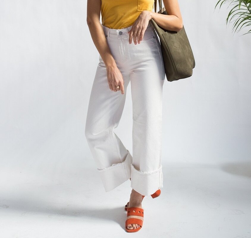 You didn’t think we’d feature sustainable white denim and not include shorts, did you? These Cleo High-Rise Shorts from DL1961 are the ultimate in high-waisted shorts, ideal for a music festival or hot summer day on the pavement. Made to elongate your legs while flattering your waist, these are perfect with a casual tee and vintage kicks. And the raw, frayed hem gives you that NYC edge too. After all, DL1961 is a NYC-based brand with sustainable manufacturing, crafting the world’s greenest high-performance denim.